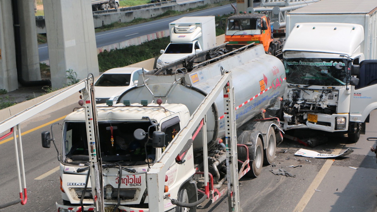 ขณะที่ นายสุวพัชญ์ คนขับรถหกล้อ บอกว่า ตนไม่รู้ว่ามีการซ่อมถนน และไม่ทันสังเกตเห็นรถที่จอดติดกันอยู่ ทำให้ไม่ได้เบรก จึงพุ่งชนท้ายรถบรรทุกน้ำมันเต็มแรง โชคดีที่ไม่มีน้ำมันอยู่ในรถ ซึ่งจากเหตุดังกล่าวทำให้ต้องปิดการจราจร เพื่อเคลียร์รถออกจากผิวจราจรนานกว่า 1 ชั่วโมง ก่อนจะเปิดช่องทางให้เดินรถได้ตามปกติ