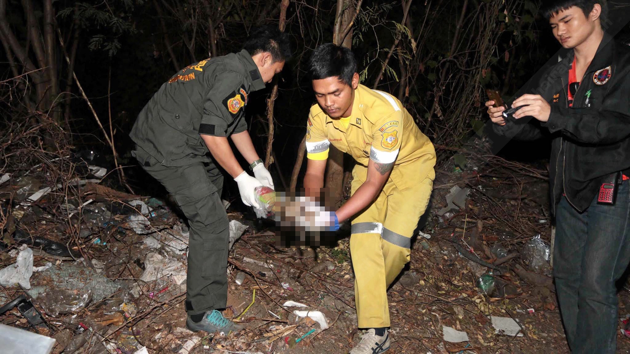 เจ้าหน้าที่มูลนิธิร่วมกตัญญูกำลังเก็บศพทารกเพศชายอายุในครรภ์ประมาณ 5 เดือน อวัยวะครบทุกส่วน เสียชีวิตมาประมาณ 4-5 วัน ถูกนำมาทิ้งไว้กลางซอยเสนานิคม 1 26 แยก 3 คาดวัยรุ่นใจแตกทำแท้งแล้วนำศพมาทิ้ง.