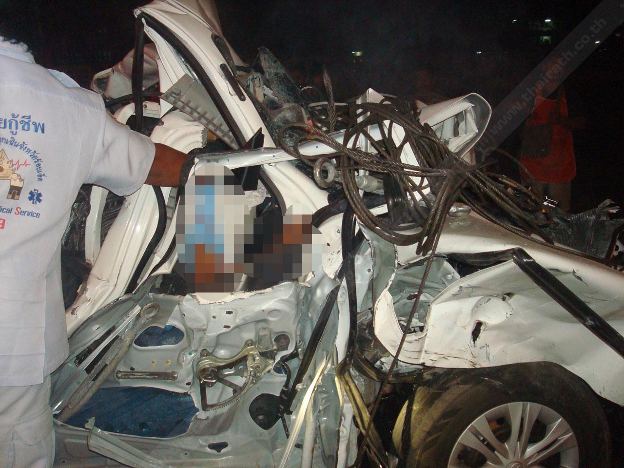 ทั้งนี้ เจ้าหน้าที่หน่วยกู้ภัยต้องใช้เวลากว่า 2 ชั่วโมง ในการใช้เครื่องตัดถ่างช่วยนำร่างของทั้งสองออกจากรถกระบะ ส่งรพ.ร้อยเอ็ด เพื่อช่วยชีวิตแต่ในที่สุดนายธีระพงษ์ ได้เสียชีวิตเพราะศีรษะได้รับอันตรายอย่างแรงและปอดแตก ส่วนนายพิสิทธิ์ อาการยังน่าห่วง ได้รับบาดเจ็บสาหัส.