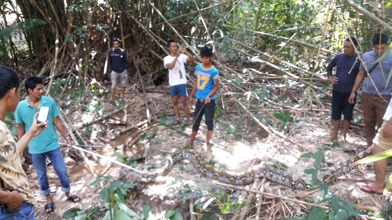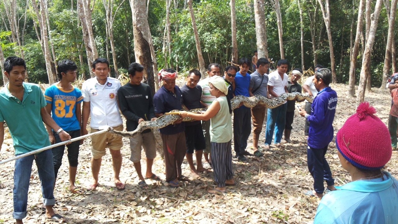 เมื่อเวลา 09.30 น. วันที่ 29 ม.ค. 58 ผู้สื่อข่าวได้รับการเปิดเผยจากเจ้าหน้าที่มูลนิธิใต้เต็กตึ๊งทุ่งใหญ่ จ.นครศรีธรรมราช ว่า เมื่อช่วงบ่ายวันที่ 28 ม.ค.ที่ผ่านมา นายสุมิตร เพชรแก้ว อายุ 40 ปี ชาวบ้านหมู่ 4 ต.ปริก อ.ทุ่งใหญ่ จ.นครศรีธรรมราช ได้แจ้งขอความช่วยเหลือให้เจ้าหน้าที่มูลนิธิฯ ให้ช่วยนำกำลังเข้าจับงูเหลือมที่มีขนาดใหญ่นอนซุกอยู่บริเวณกอไผ่ข้างริมห้วย บ้านห้วยใหญ่ หมู่ 8 ต.ปริก อ.ทุ่งใหญ่