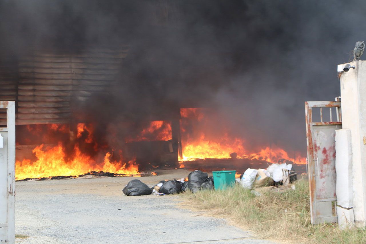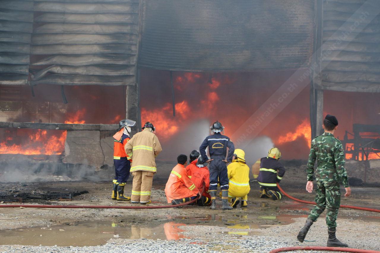 ที่เกิดเหตุมีขนาดพื้นที่ 1 ไร่ กับ 2 งาน โดยมี 2 อาคาร ซึ่งอาคารที่เป็นโกดังเพลิงกำลังลุกไหม้โกดังที่เก็บสินค้า เก็บโฟมที่ทำที่นอน และเครื่องจักรที่ผลิตที่นอน โดยไฟได้ลุกไหม้โฟมที่ใช้เป็นวัสดุผลิตที่นอนอยู่ภายในโรงงาน ซึ่งระหว่างที่รอรถดับเพลิงอยู่นั้น ก็ได้เกิดกระแสลมพัดบริเวณดังกล่าว จนทำให้เกิดพายุงวงช้างไฟขนาดใหญ่อยู่หลายครั้ง ทำให้ประชาชนที่มุงดูต้องวิ่งหนีตายกันอลหม่าน ซึ่งรถดับเพลิงจำนวน 8 คัน ระดมฉีดน้ำที่โกดังดังกล่าว ต้องประสานขอรถดับเพลิงพื้นที่ใกล้เคียงอีก 12 คัน ในการช่วยดับไฟที่กำลังลุกโหมอย่างรุนแรง นอกจากนี้ ยังมีถังแก๊สจำนวน 40 ถัง ที่ทางโรงงานเพิ่งจะสั่งมาลงไว้ในโกดังและนอกโกดัง โดยเจ้าหน้าที่ใช้เวลา 2 ชั่วโมงเพลิงจึงสงบ