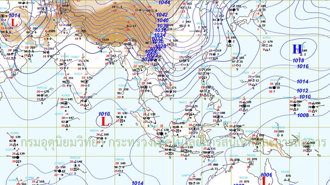 ประเทศไทยตอนบนจะมีอากาศหนาวเย็นลง โดยอุณหภูมิจะลดลง 2-4 องศาเซลเซียส อ่าวไทยตอนล่างตั้งแต่จังหวัดสุราษฎร์ธานีลงไป มีคลื่นสูง 2-3 เมตร เรือเล็กควรงดออกจากฝั่งต่อไปอีก 1-2 วัน ส่วน กทม.มีหมอกบางในตอนเช้า อุณหภูมิ 22-34 องศาฯ...