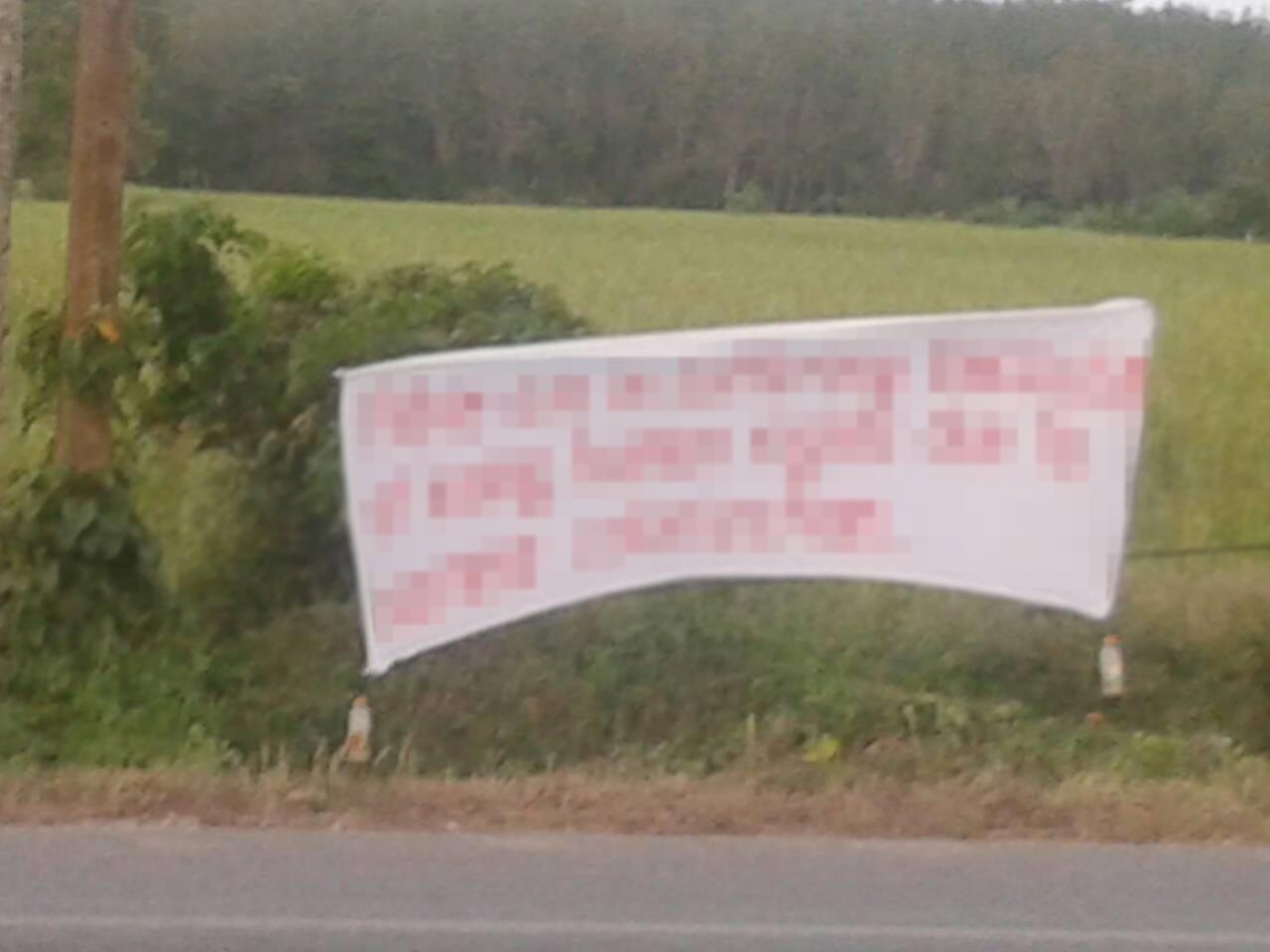 เมื่อเวลา 07.45 น. วันที่ 5 ก.พ. ร.ต.ต.หิรัญ สังข์แก้ว หน.ศูนย์วิทยุสื่อสาร สภ.เมืองยะลา จ.ยะลา รับแจ้งพบป้ายผ้าและวัตถุต้องสงสัยบริเวณสะพานริมทางหลวงสาย 4082 (ยะลา-ทุ่งยางแดง) บ้านสวนส้ม หมู่ 7 ต.สะเตง จึงรายงานให้ผู้บังคับทราบ