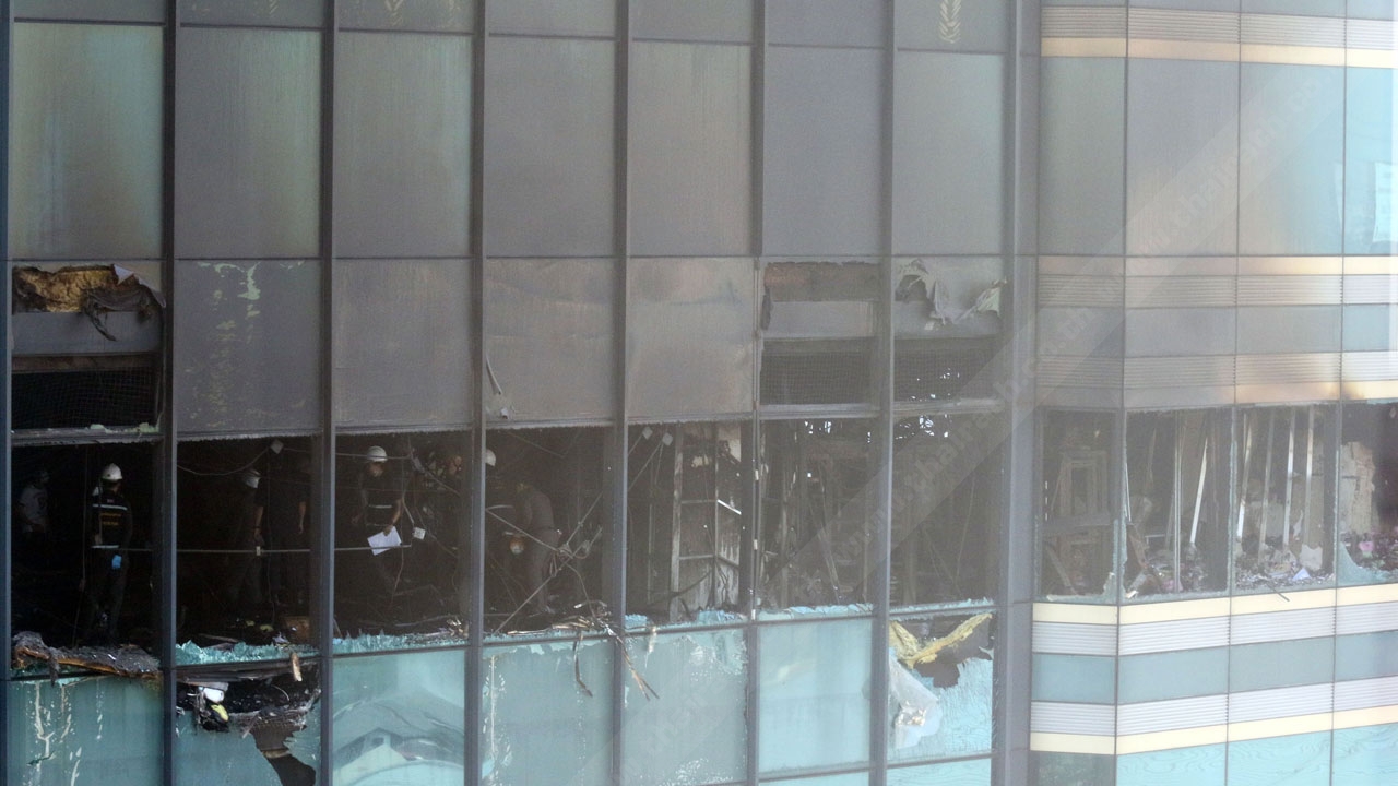นายยอดขวัญกล่าวอีกว่า ทั้งนี้ จากการตรวจภายในอาคารบริเวณชั้น 10 ซึ่งเป็นจุดต้นเพลิงพบมีความเสียหายเป็นอย่างมาก ไฟลุกไหม้กินในพื้นที่โดยรวมประมาณ 400 ตารางเมตร เอกสารในชั้นเสียหายทั้งหมด เป็นที่เก็บเอกสารประกอบการขอสินเชื่อที่อยู่อาศัย และเป็นเอกสารเก่า โดยจะรวบรวมจากธนาคารทุกสาขามาไว้ที่สำนักงานใหญ่ ส่วนชั้นอื่นๆนั้นไม่ได้รับความเสียหายจากเพลิงไหม้ แต่ได้รับความเสียหายจากน้ำที่ใช้ดับเพลิงเท่านั้น