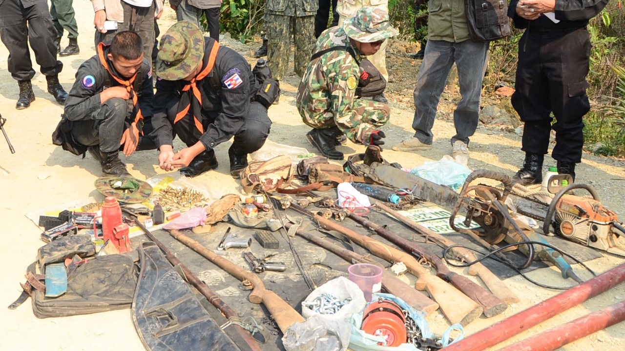 ประกอบด้วย 1.ไม้แดงท่อนเส้นผ่าศูนย์กลางประมาณ 20-30 นิ้ว ยาวประมาณ 2-3 ม. จำนวน 9 ท่อน ขนาดเส้นผ่าศูนย์กลางประมาณ 10 นิ้ว ยาวประมาณ 3 ม. จำนวน 1 ท่อน 2.ไม้แดงแปรรูปขนาดประมาณ 20 นิ้ว ยาวประมาณ 2-3 ม. จำนวน 6 แผ่น และขนาดประมาณ 10 นิ้ว ยาว 2 ม. จำนวน 2 แผ่น 3.เลื่อยยนต์ และเลื่อยไฟฟ้าตัดแปลง จำนวน 2 ตัว 4.รอกพร้อมโซ่ และเหล็กคานยึดรอก จำนวน 1 ชุด 5.อาวุธปืนไทยประดิษฐ์ อีแก๊ป สำหรับล่าสัตว์จำนวน 6 กระบอก 6.อาวุธปืนสั้นดัดแปลงจากปืนลำ จำนวน 3 กระบอก