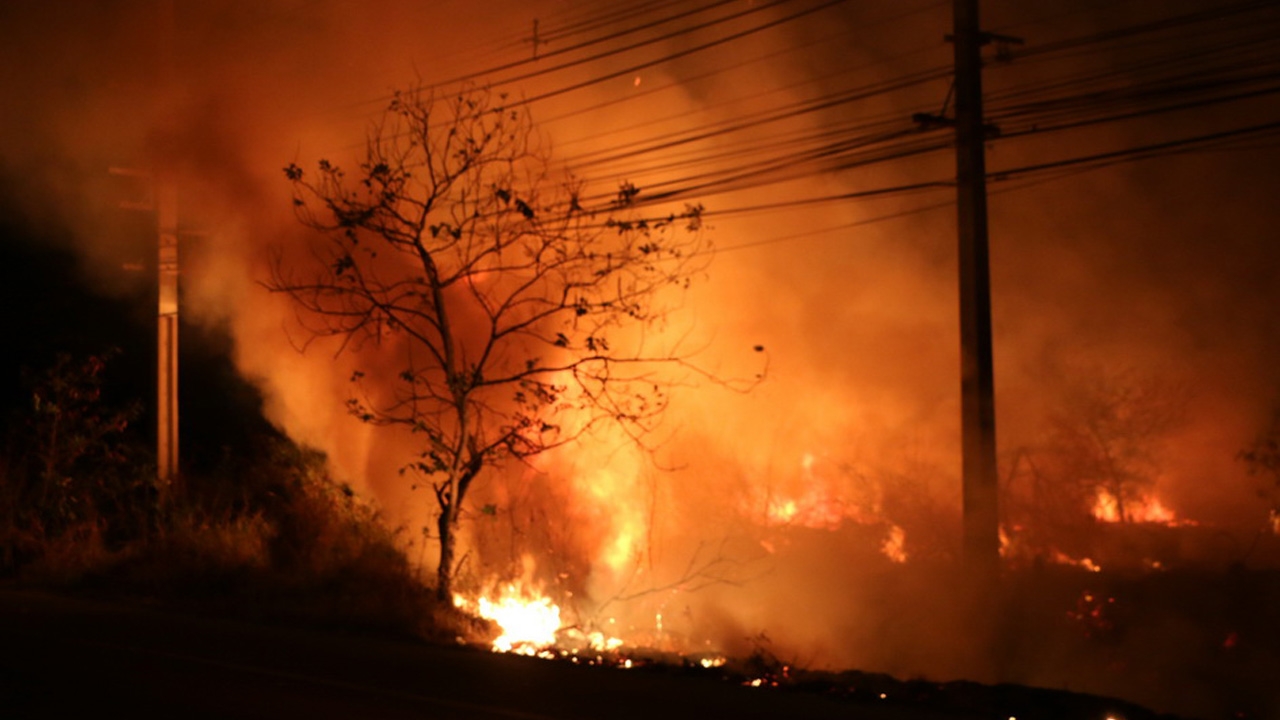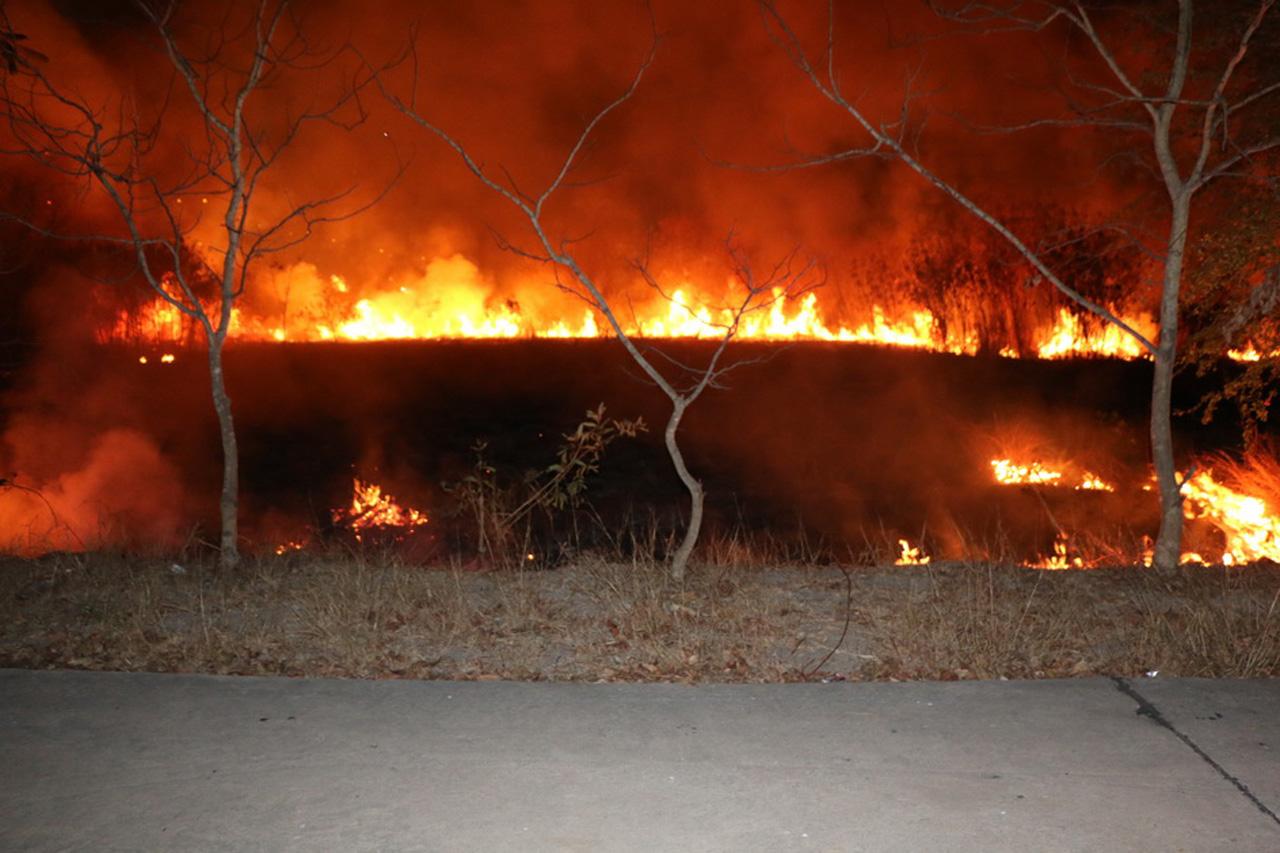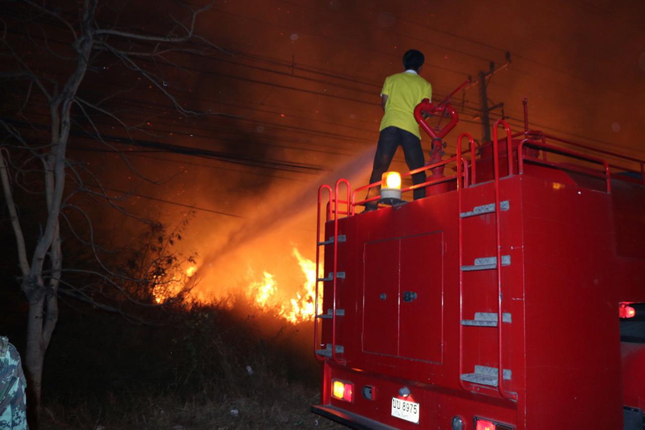 มือดีย่องจุดไฟเผาหญ้ากลางดึก ริมถนนบางนา-ตราด เกือบลามโรงงาน โชคดียามเฝ้าโรงงานเห็น รีบแจ้งตำรวจประสานรถดับเพลิง เข้าควบคุมเพลิง ที่ลุกลามวงกว้างกว่า 3 ไร่ สัตว์เลื้อยคลาน สุนัข ที่อาศัยอยู่ในป่าหญ้าวิ่งหนีตายอลหม่าน...