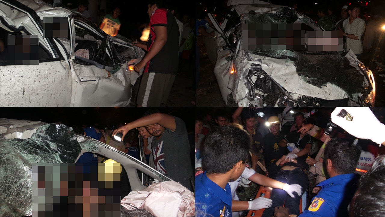 เกิดอุบัติเหตุรถปิกอัพเสียหลักพุ่งขึ้นเกาะกลางถนน ชนต้นไม้ขาด คนขับกระเด็นตกรถตาย ส่วนรถยังไม่หยุด ไปชนรถเก๋งที่มีคนสูงอายุขับมาจนพังยับ ถุงลมนิรภัยแตก มีคนติดอยู่ในรถร้องระงมต้องช่วยออกมาส่ง รพ. สรุปมีคนตาย1 บาดเจ็บสาหัส4...