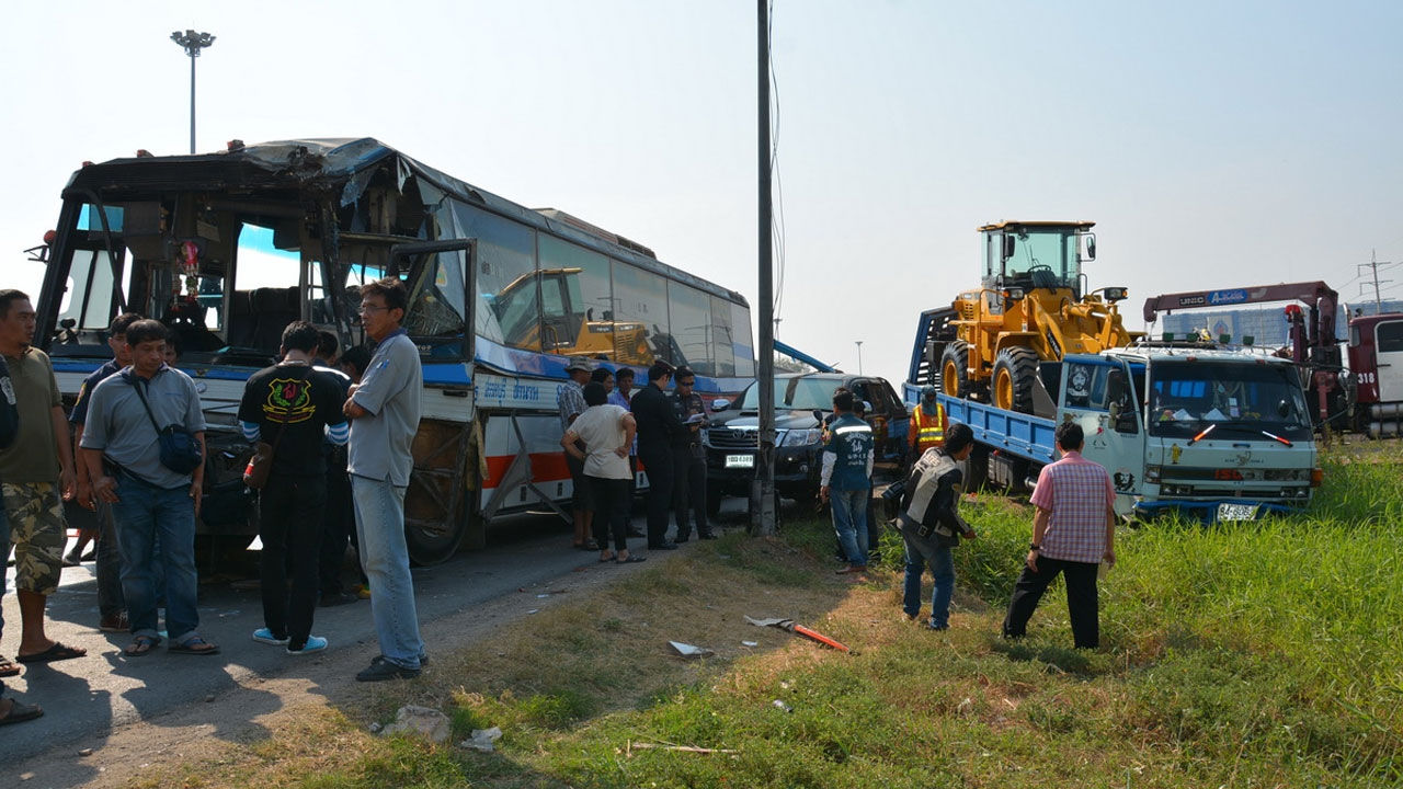 บัสปรับอากาศสายกรุงเทพฯ - ชัยนาท เบรกไม่ทำงาน พุ่งชนสิบล้อ และรถอีก 2 คัน ขณะติดด่านตรวจ เจ็บ 5 ราย ที่อยุธยา ...