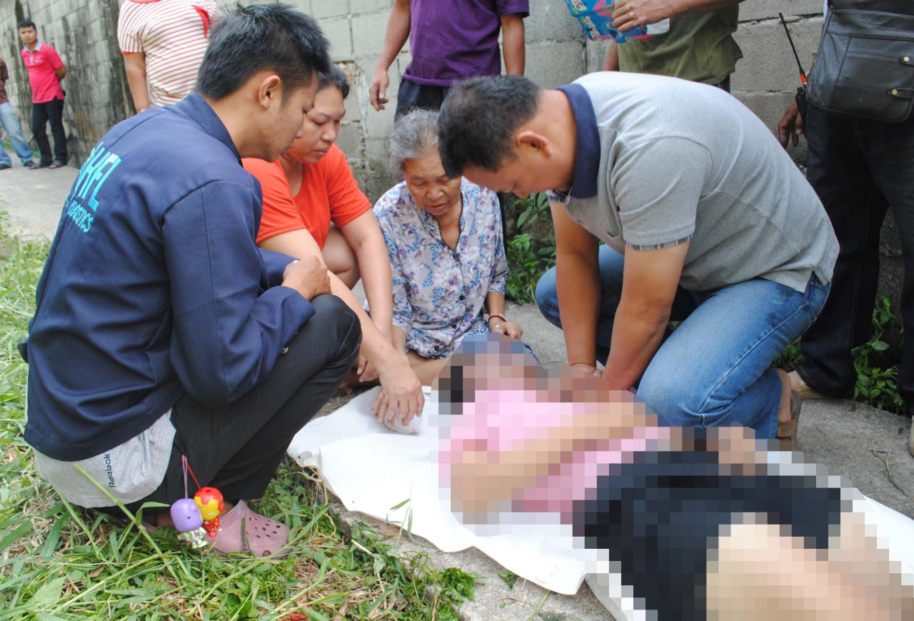 ต่อมา นายธนัท สุขใจ อายุ 44 ปี และนางอำไพ สุขใจ อายุ 43 ปี พ่อและแม่ของนายธนกร ผู้ตาย พร้อมด้วยญาติๆ เดินทางมาถึง โดยทั้งหมดต่างร้องไห้เศร้าโศกเสียใจ พยายามช่วยกันอุ้มร่างนายธนกร พาดบ่าไล่น้ำออกจากในช่องท้องและปั๊มหัวใจหมายให้ลูกฟื้น แต่ก็ไม่มีท่าทีว่าจะฟื้น เนื่องจากผู้ตายจมน้ำไปนานนับชั่วโมงแล้ว