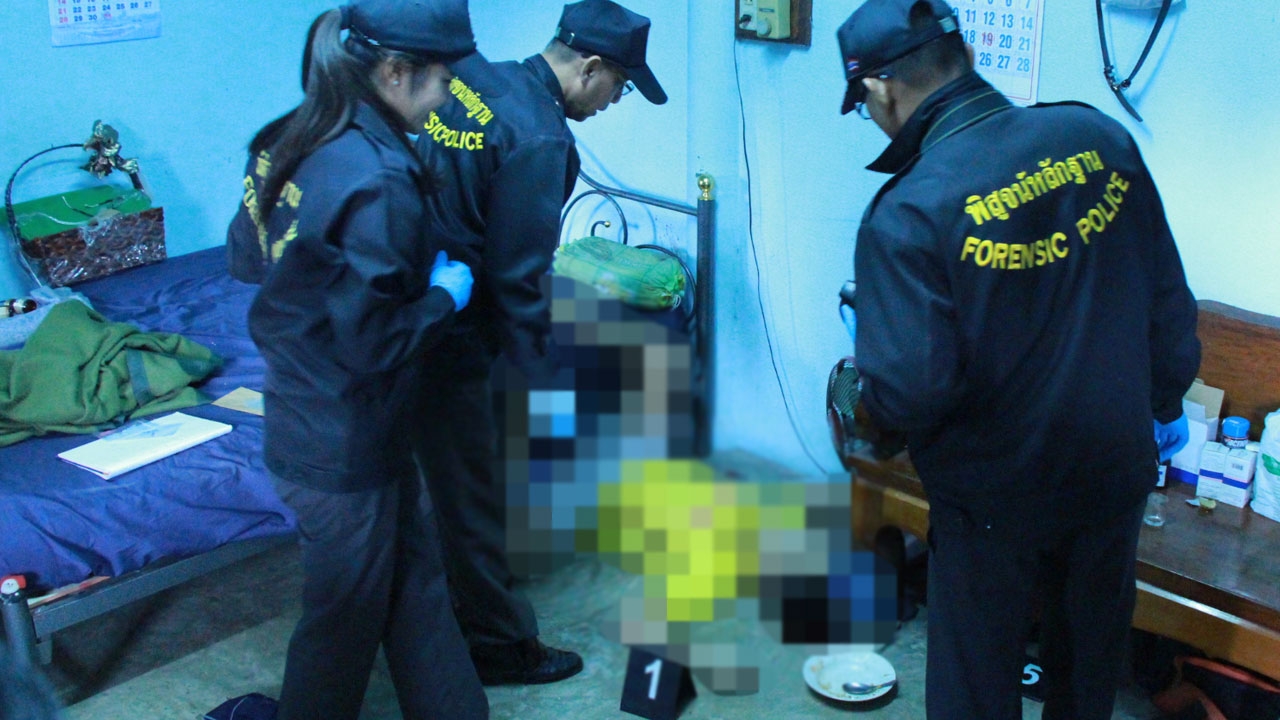 ภายในห้องพัก พบเป็นชายนอนหงายตกอยู่ข้างเตียง ขาพาดอยู่กับที่นอน สวมเสื้อสีเหลือง กางเกงขาสั้นสีครีม ทราบชื่อ นายสำเภา ชัยหา อายุ 63 ปี บนเตียงพบปืนออโตเมติกไม่ทราบยี่ห้อ ขนาด 7 มิลลิเมตร ตกอยู่ พร้อมซองพกหนังสีดำ บริเวณข้างลำตัวพบกระสุนที่ยังไม่ได้ใช้งานตกอยู่ 1 นัด และปลายเตียงยังพบปลอกกระสุนที่ยิงแล้ว ตกอยู่อีก 1 นัด ใกล้กัน พบขวดสุราขาวหลายขวด ที่ดื่มแล้ว และจานข้าว พร้อมถุงยาจากโรงพยาบาลปราณบุรีจำนวนหนึ่งวางอยู่บนเก้าอี้ไม้ยาว สภาพศพมีบาดแผลถูกยิงบริเวณศีรษะ ที่ขมับขวา เป็นรูทะลุซ้าย 1 นัด ตรวจสอบตามร่างกายไม่พบร่องรอยการถูกทำร้ายแต่อย่างใด เสียชีวิตมาแล้ว ไม่ต่ำกว่า 12 ชม. เบื้องต้นสันนิษฐานว่า ผู้ตายอาจอยู่คนเดียว เกิดอาการซึมเศร้า ประกอบด้วยอาการเจ็บป่วยโรคต่างๆ จึงน้อยใจคิดสั้น ใช้ปืนยิงจ่อขมับฆ่าตัวตาย