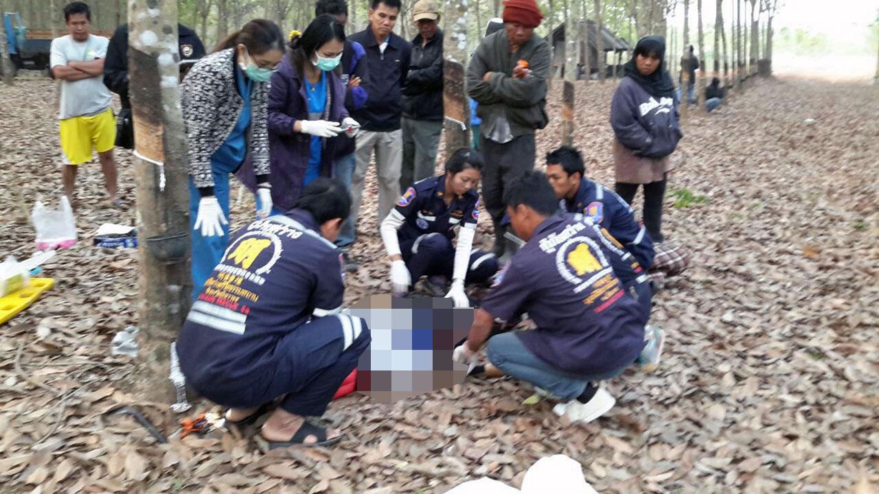 ที่เกิดเหตุเป็นสวนยางพารา พบศพ น.ส.อภิญญา อินทรักษา อายุ 37 ปี อยู่บ้านเลขที่ 89 หมู่ 4 ต.ท่าดอกคำ อ.บึงโขงหลง สภาพศพใบหน้าและศีรษะแตก มีแผลเลือดไหลอาบ ที่หน้าท้องเป็นแผลขนาดใหญ่ยาว 8 นิ้ว แผ่นหลังมีรอยเท้าช้างเหยียบจนฟกช้ำเขียวไปทั่ว ส่วนที่โคนต้นยางพาราพบไฟฉายส่องกรีดยางแตกละเอียดรวมทั้งแบตเตอรี่ มีมีดกรีดยางตกอยู่ใกล้ๆ และรอยเปลือกยางเพิ่งถูกกรีดน้ำยางไหลอาบโคนต้น