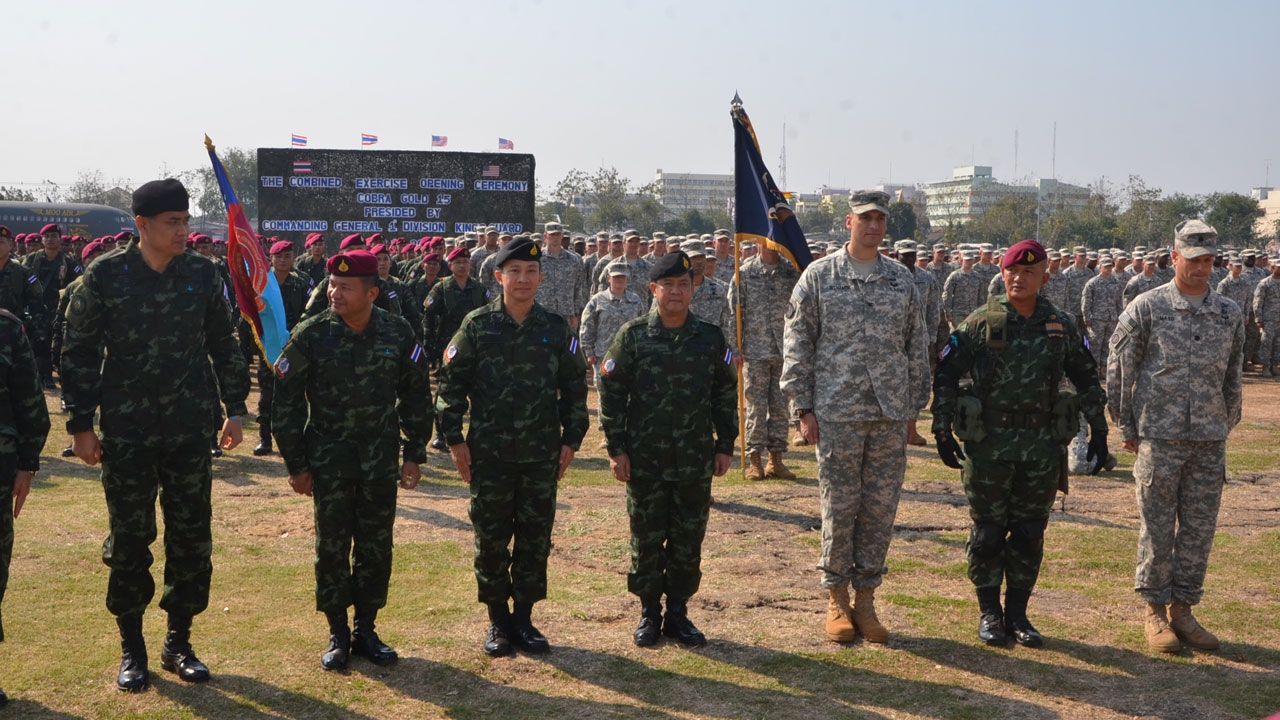 ผู้บัญชาการกองพลที่ 1 รอ.เป็นประธานเปิดการฝึกร่วม ‘คอบร้าโกลด์ 15’ กองทัพบกไทย-สหรัฐฯ ในพื้นที่การฝึกทางทหาร จ.ลพบุรี มีกำลังพลของทั้ง 2 ประเทศเข้าร่วมฝึกรวม 1,318 นาย กำชับทหารไทยดูแลทหารมะกันดังพี่น้อง...