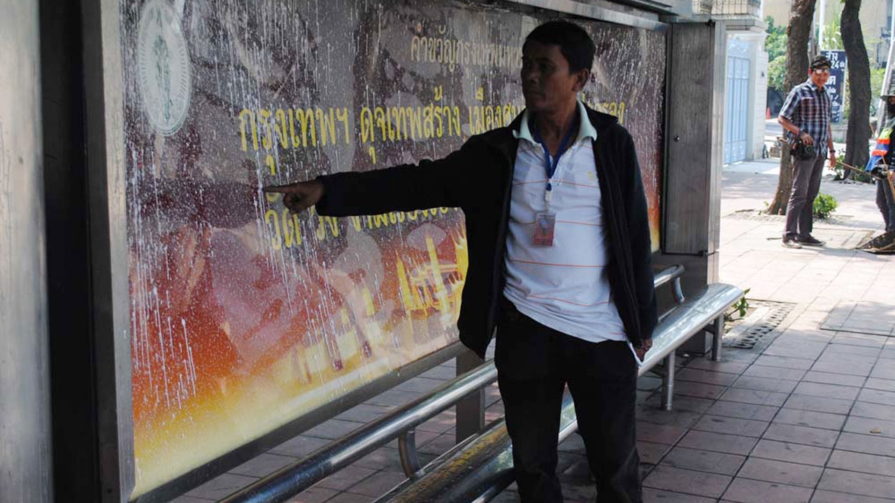 จากการสอบสวน นายสิทธิศักดิ์ เปิดเผยว่า ก่อนเกิดเหตุนั่งรถรถเมล์ไปทำงานที่โรงงานย่านพุทธมณฑลสาย 2 ระหว่างที่รถประจำทางสาย 84 สีครีมแดง วิ่งระหว่างวงเวียนใหญ่-สวนสามพราน ไม่ทราบเลขทะเบียน กำลังแล่นออกจากป้ายจู่ๆ ล้อด้านหลังข้างซ้ายของรถคันดังกล่าวก็เหยียบทับขวดสารเคมีบางอย่าง จนน้ำในขวดแตกกระจาย สาดใส่ตนและผู้โดยสารที่นั่งและยืนรอรถที่ป้าย ก่อนที่รถประจำทางดังกล่าวจะเคลื่อนตัวออกไป ทีแรกยังไม่รู้สึกอะไร แต่สักพักทุกคนก็ปวดแสบปวดร้อนจนต้องพากันเดินทางมาโรงพยาบาลอย่างเร่งด่วน