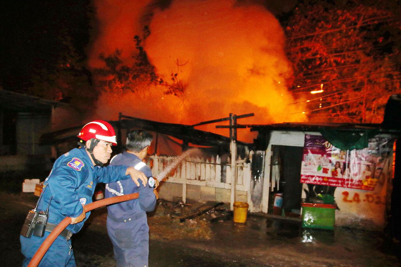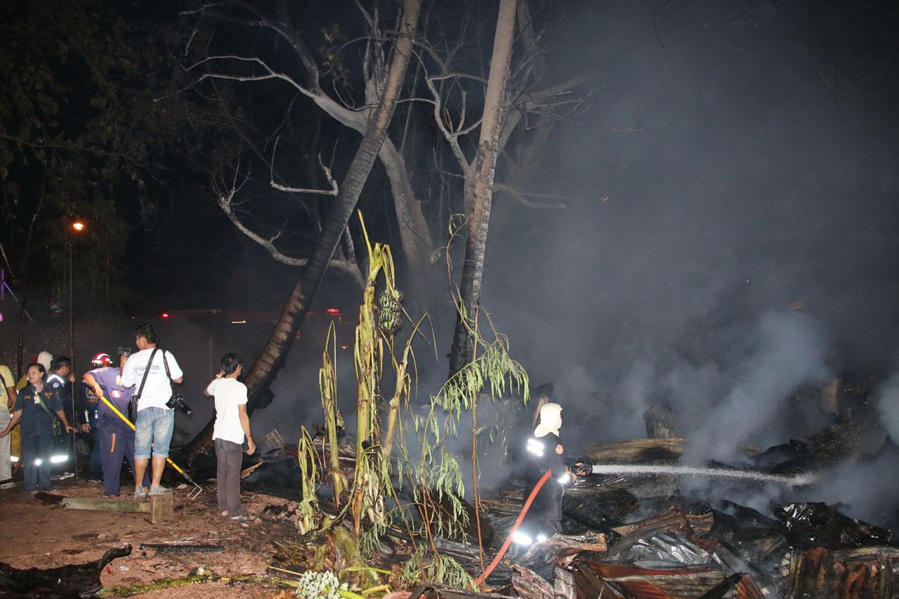 ที่เกิดเหตุเป็นบ้านไม้ชั้นเดียวมุงหลังคาสังกะสี ยาวติดต่อกัน 4 คูหา ตั้งอยู่ริมถนนหน้าโรงพยาบาลสมเด็จพระนางเจ้าสิริกิติ์ กรมแพทย์ทหารเรือ พบเพลิงกำลังโหมลุกไหม้อย่างรุนแรง และกำลังลุกลามไปอย่างรวดเร็ว ลุกไหม้สายไฟจากเสาไฟฟ้าจำนวนมากที่ตัดผ่านตัวบ้าน จนเกิดประกายไฟขึ้นอย่างน่ากลัว สร้างความแตกตื่นโกลาหลให้กับชาวบ้านในละแวกนั้น ต้องหยิบของหนีไฟกันอลหม่าน เจ้าหน้าที่การไฟฟ้าสัตหีบได้ทำการตัดกระแสไฟฟ้า ก่อนรถดับเพลิงรวม 3 คัน ได้ระดมฉีดน้ำอย่างหนักอยู่นานกว่า 1 ชั่วโมง จึงสามารถควบคุมเพลิงไว้ได้ ตรวจสอบภายในบ้านพบผู้เสียชีวิตถูกไฟคลอกเป็นตอตะโก ทราบชื่อคือ นางนนท์ ใจเที่ยงแท้ หรือเจ๊อ้อย อายุ 57 ปี เจ้าของบ้านที่นอนป่วยเป็นอัมพฤกษ์