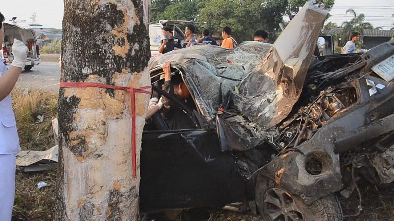 อุบัติเหตุรถกระบะเสียหลักชนท้ายรถยนต์ชาวบ้าน ก่อนพุ่งไปอัดกับต้นไม้ บน ถ.สุขุมวิท สายกรุงเทพฯ-จันทบุรี ขาเข้าเมือง ทำคนงานเสียชีวิตในที่เกิดเหตุ ส่วนสามีร่างอัดคาซากรถบาดเจ็บ...