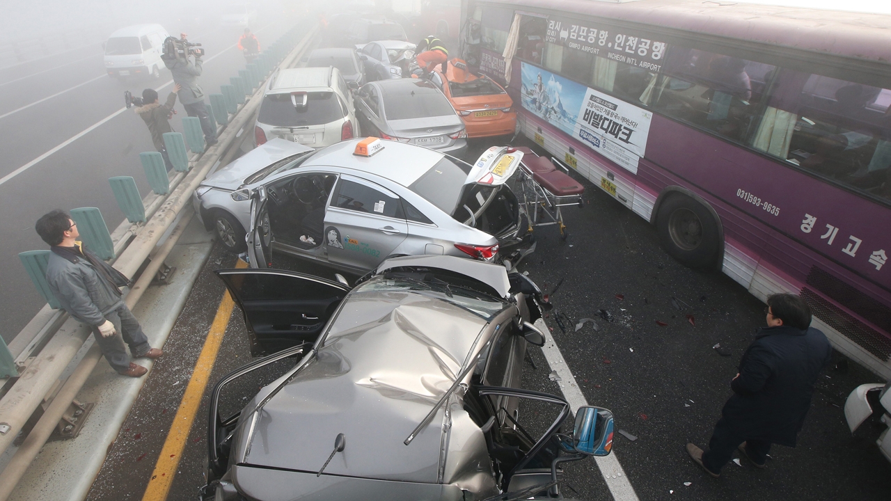 เกิดอุบัติเหตุร้ายแรง รถยนต์ชนกันวินาศสันตะโร ยาวเหยียด เป็นร้อยคัน ใกล้ท่าอากาศยานระหว่างประเทศอินชอน ในเกาหลีใต้ ทำให้มีผู้เสียชีวิตอย่างน้อย 2 ราย บาดเจ็บกว่า 40 ราย คาดสาเหตุ มาจากมีหมอกลงจัด จนทัศนวิสัยในการมองเห็นต่ำมาก...