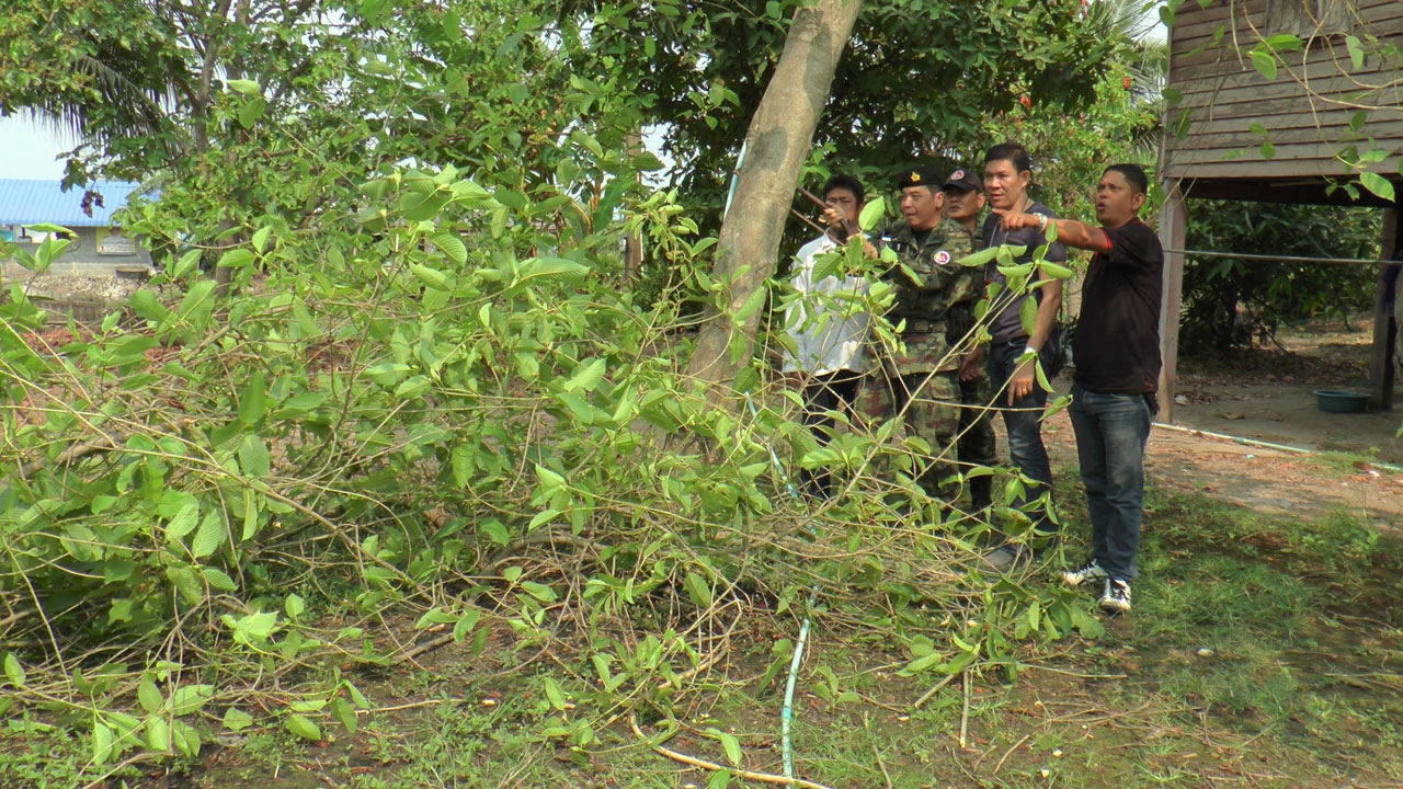 เจ้าหน้าที่เดินทางไปถึง พบบริเวณรอบบ้านดังกล่าว มีต้นกระท่อมขนาดใหญ่ขนาดคนโอบอยู่ถึง 3 ต้น สูงประมาณ 10-15 เมตร แต่ละต้นมีการต่อท่อน้ำติดตั้งสปริงเวย์ขึ้นไปจนถึงยอด แตกกิ่งก้านสาขา จนใบกระท่อมทุกใบเขียวขจี นอกจากนี้ ยังมีต้นเล็กๆ อยู่โดยรอบบ้านอีกหลายต้น เจ้าหน้าที่ต้องปีนขึ้นไปบนต้น ใช้ทั้งมีด ขวาน และเลื่อยค่อยๆ ตัดโค่นลงพร้อมเก็บใบพืชกระท่อมเก็บใส่ถุงปุ๋ยได้ถึงเกือบ 10 ถุง เพื่อนำไปเป็นหลักฐานดำเนินคดี