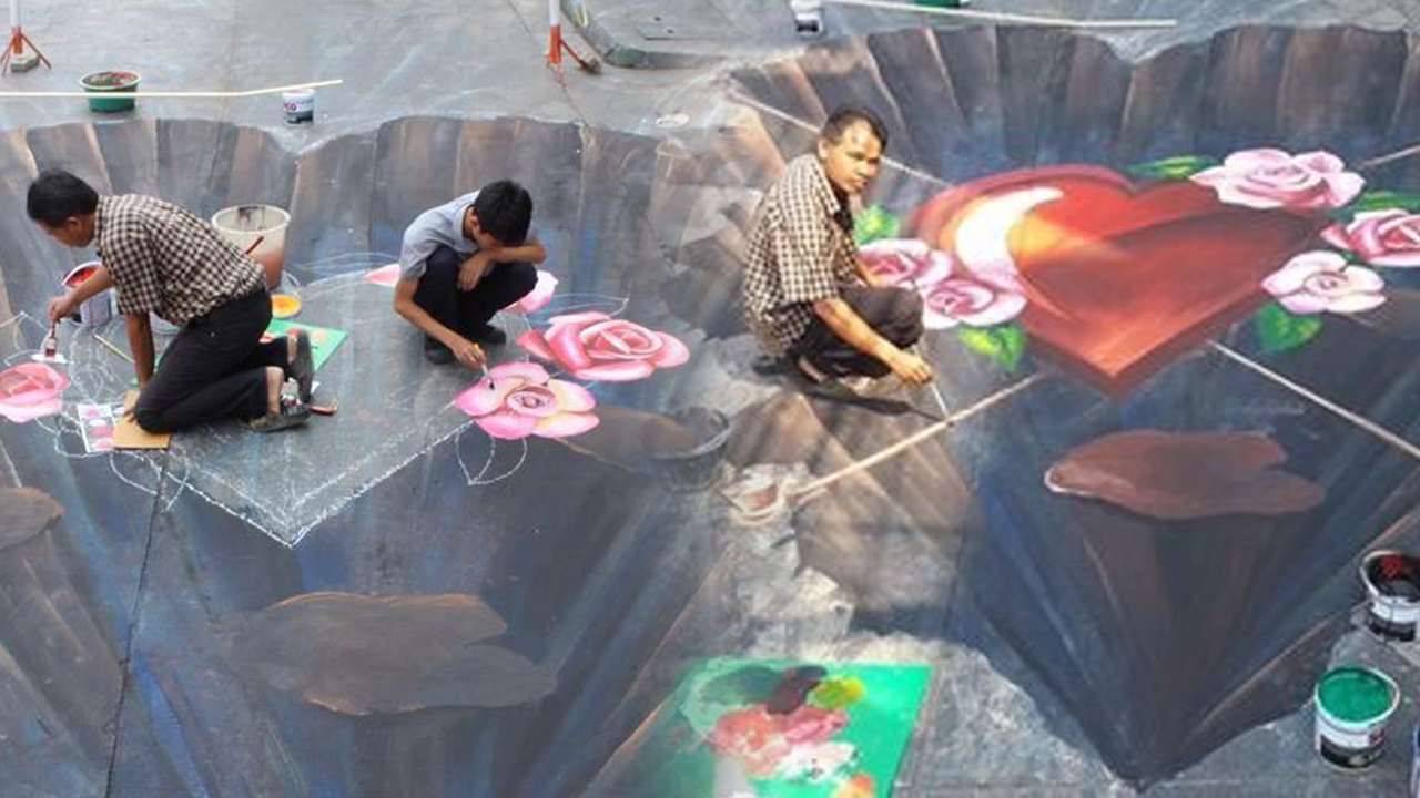 นักศึกษาแผนกวิจิตรศิลป์ วิทยาลัยอาชีวศึกษาอุบลราชธานี สร้างสรรค์ผลงานภาพวาดแบบสามมิติ ถนนสายความรัก ชื่อ 'ความรักย่อมมีอุปสรรค' ต้อนรับเทศกาลวาเลนไทน์ ซึ่งจะจัดขึ้นในวันที่ 13-14 ก.พ.นี้ สะท้อนรักมีทั้งสมหวังและอุปสรรค...