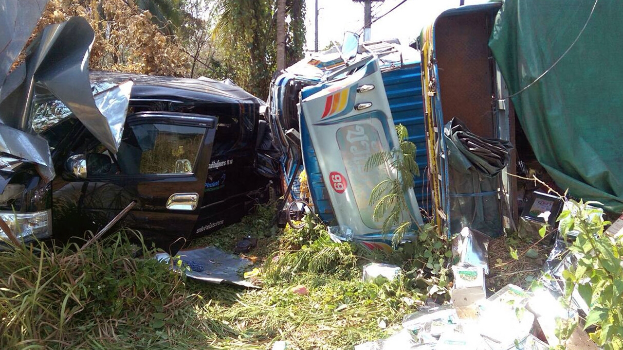 เมื่อเวลา 11.45 น. วันที่ 12 ก.พ. 58 ร.ต.ท.ถนอม ทองแป้น พนักงานสอบสวน สภ.ท่าฉัตรไชย จ.ภูเก็ต รับแจ้งเหตุจากชาวบ้านว่า มีอุบัติเหตุรถบรรทุกสิบล้อพุ่งชนรถตู้และรถจักรยานยนต์ที่จอดติดไฟแดง บริเวณสี่แยกสนามบินสายเก่า ถ.เทพกระษัตรี ต.สาคู อ.ถลาง มีผู้เสียชีวิตและบาดเจ็บ จึงรุดไปตรวจสอบ พร้อมมูลนิธิกุศลธรรมภูเก็ต และกู้ชีพ อบต.ไม้ขาว