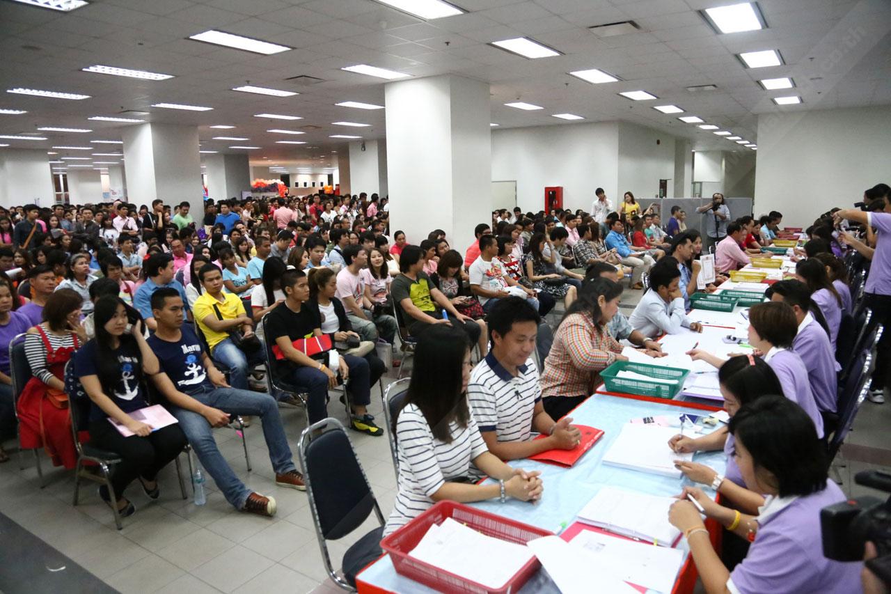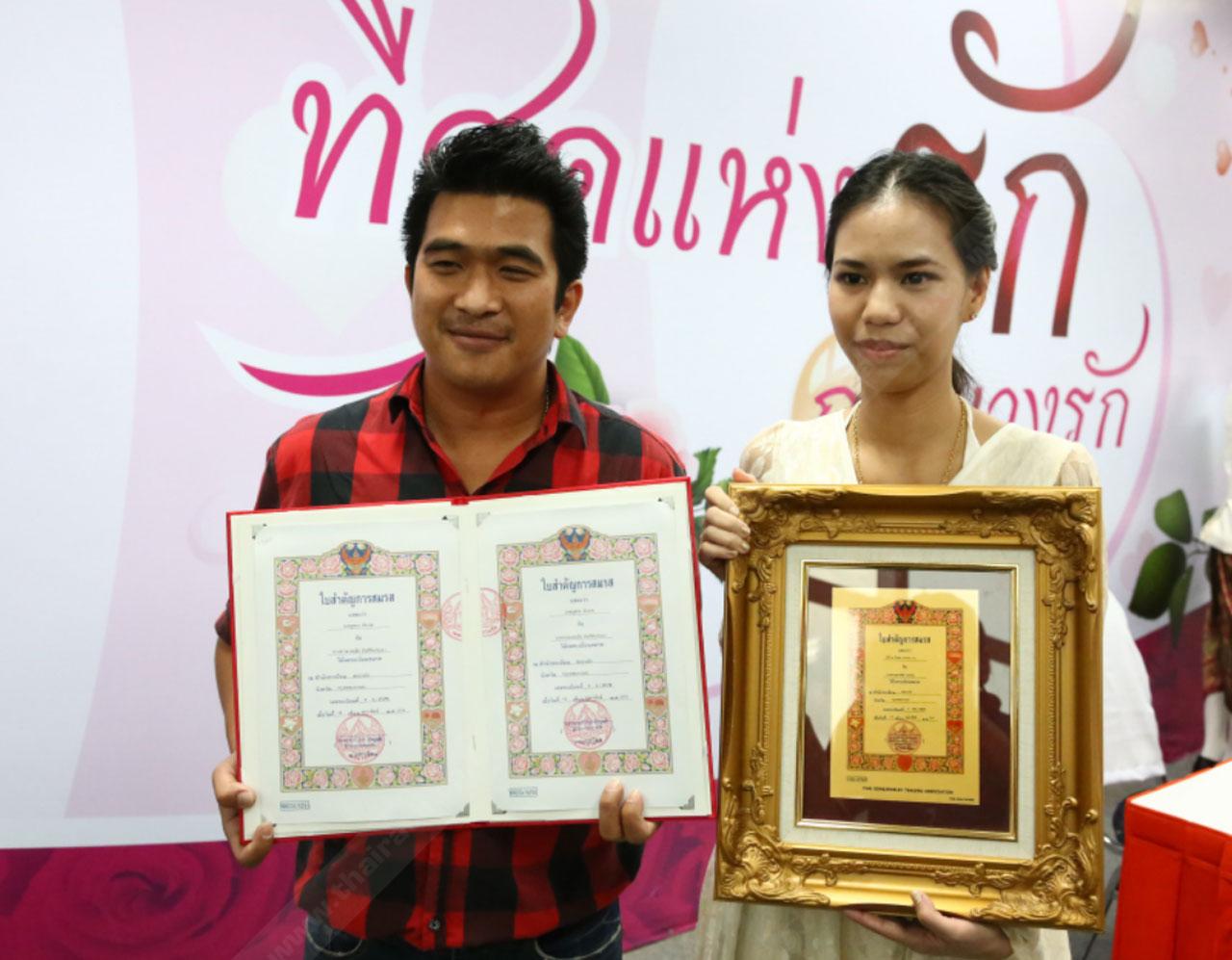 หนุ่ม-สาวพนักงานบริษัทเอกชนเฮงได้รับทะเบียนสมรสทองคำจากการจดทะเบียนสมรสที่เขตบางรัก ท่ามกลางบรรยากาศคึกคัก...