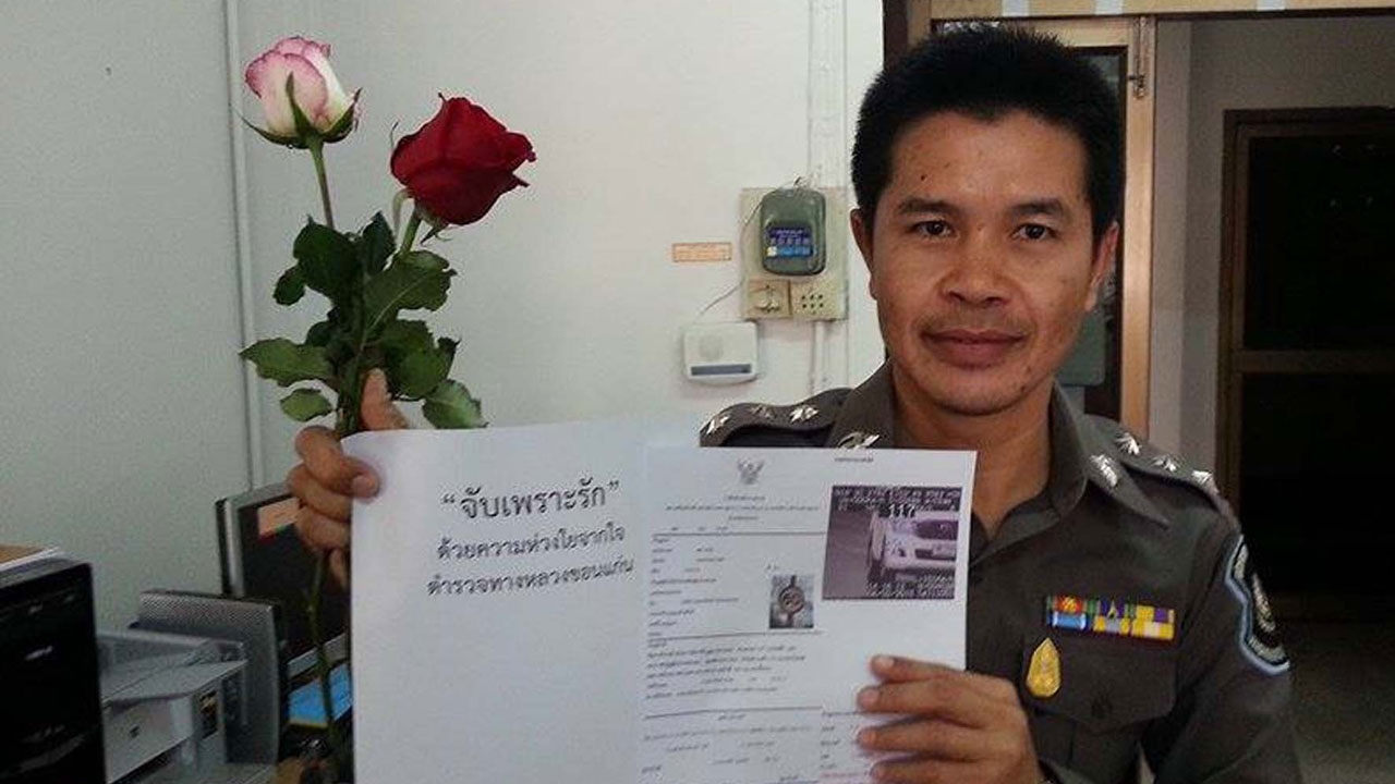 ตำรวจทางหลวงขอนแก่น มอบดอกกุหลาบแทนใจพร้อมใบสั่ง เตือนสตินักซิ่ง "เพราะรักจึงจับ" ในช่วงเทศกาลวาเลนไทน์