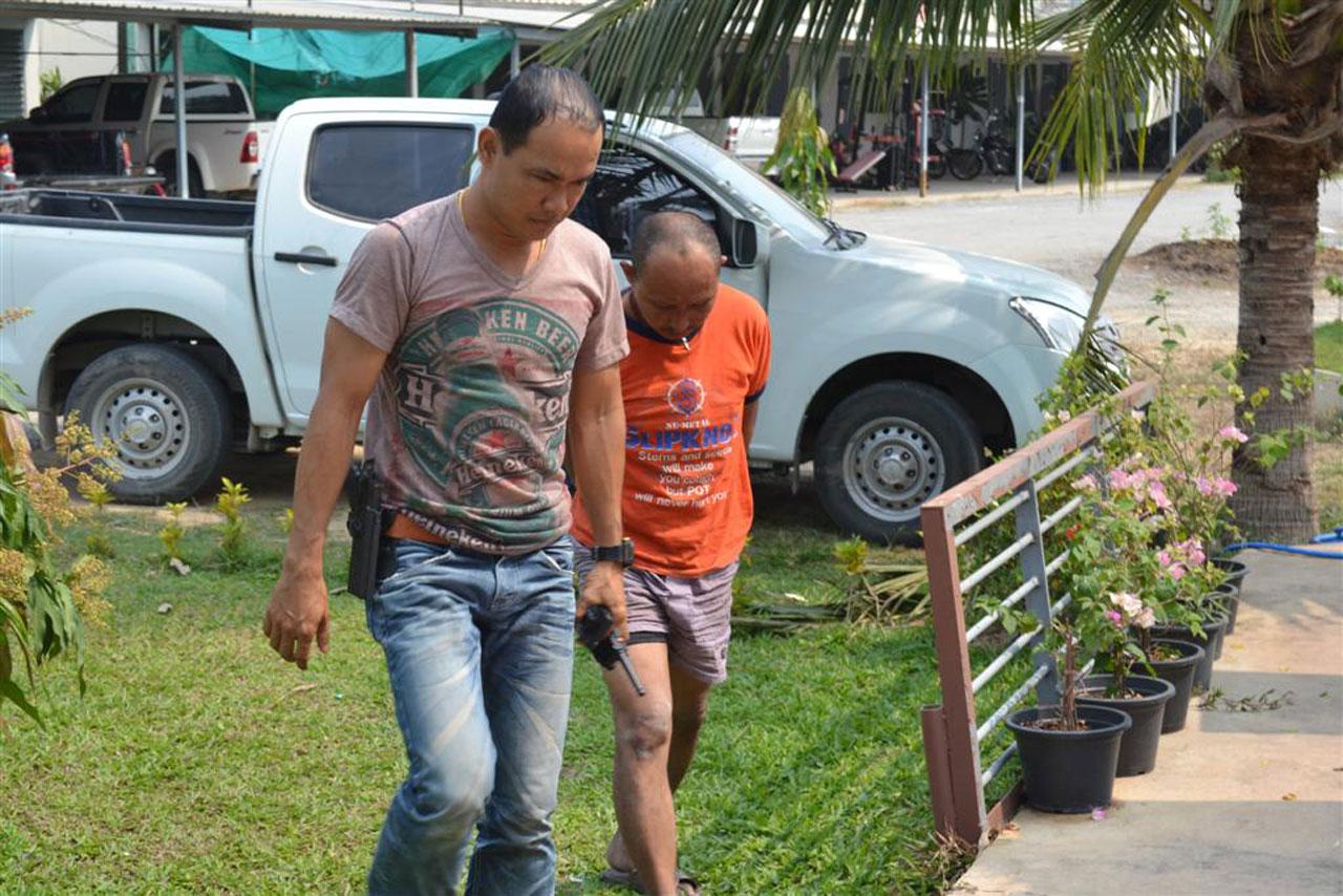 จากการสอบสวน ให้การว่า หลังจากบวชอยู่ที่วัดใน จ.อุทัยธานี ได้ 1 พรรษา และได้ย้ายมาของเป็นพระลูกวัดโคกเจ็ดลูก ได้ 1 เดือนกว่า เพราะมีเพื่อนบวชเป็นพระอยู่ก่อนแล้ว ก่อนเกิดเหตุ ได้ให้ลูกศิษย์แอบไปซื้อเหล้ามากินในกุฏิ กับพระที่ได้บาดเจ็บระหว่างกินเหล้ากันอยู่ ตนเอง ได้เอ่ยปากทวงเงินที่ผู้บาดเจ็บยืมไป และต่อว่าเรื่องที่ชอบยุ่งเกี่ยวกับภรรยาตน ที่อาศัยอยู่ จ.สระบุรี เกิดมีปากเสียงเถียงกัน กระทั่งถึงขั้นชกต่อยกัน แต่ตนสู้ไม่ไหว เลยไปหยิบมีดที่ซ่อนไว้ออกมาแทง แล้วเปลื่ยนเสื้อผ้าหลบหนี ก่อนถูกเจ้าหน้าที่จับกุมตัวได้.