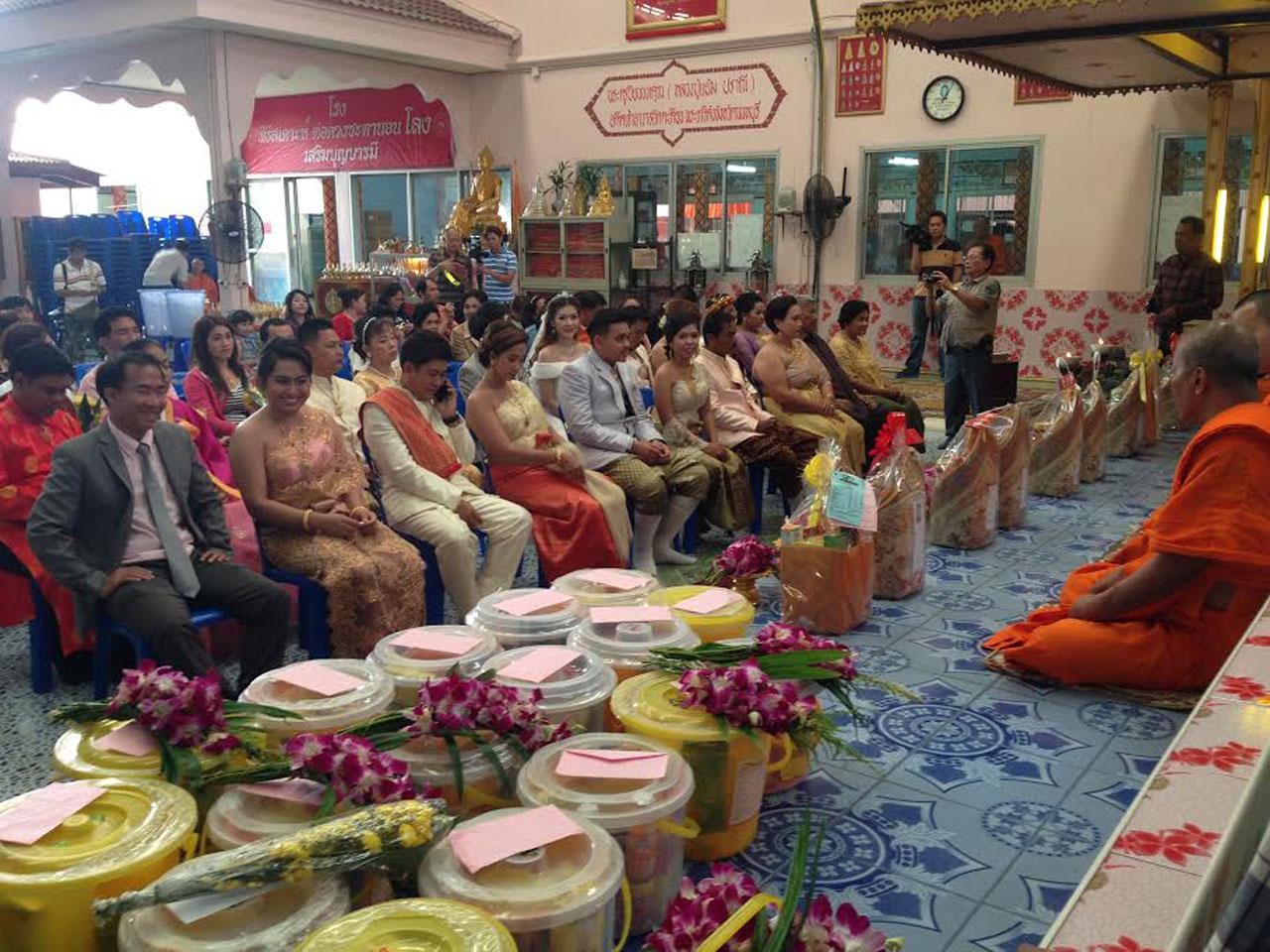 พระครูสมุห์สงบ กล่าวว่า ทางวัดได้จัดงานครั้งนี้ขึ้นมาเป็นปีที่ 2 แล้ว โดยครั้งแรกเริ่มเมื่อวันที่ 14 ก.พ.57 ซึ่งตรงกับวันมาฆบูชาพอดี แต่มาปีนี้ถึงวันมาฆบูชาจะไม่ตรงกับวันวาเลนไทน์แต่ก็มีญาติโยมเข้ามาติดต่อขอให้ทางวัดช่วยจัดงานแต่งงานดังกล่าวเพราะมีความเชื่อตามสำนวนไทยว่า 'ร่วมห่อลงโรง' จะได้ใช้ชีวิตคู่อยู่กันไปยืดยาวจนกว่าจะตายจากกัน
