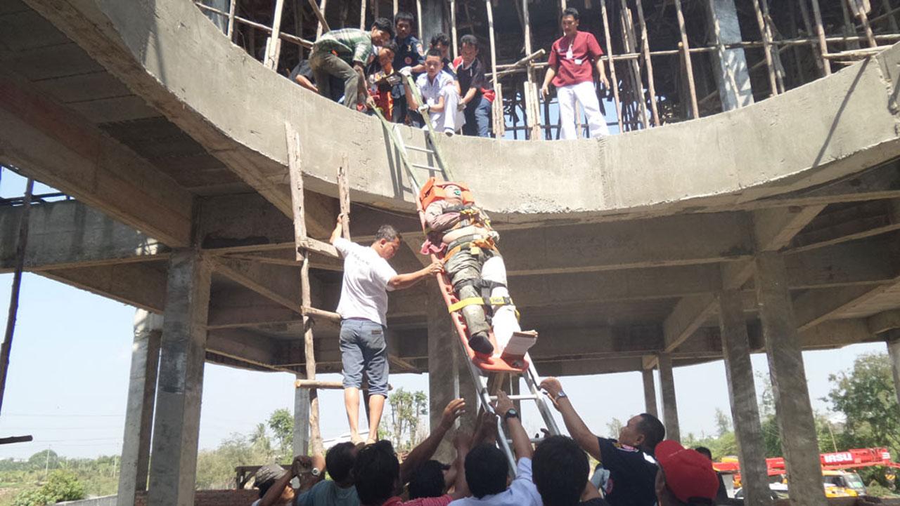 ที่เกิดเหตุเป็นอาคาร 3 ชั้น อยู่ระหว่างก่อสร้าง เนื้อที่ประมาณ 200 ตารางวา พบโครงเหล็กด้านหน้าของอาคารทรุดลงมา มีผู้บาดเจ็บจำนวน 2 คน ติดอยู่ด้านบนอาคาร เจ้าหน้าที่ต้องช่วยเหลือนำตัวออกมา ก่อนปฐมพยาบาล และนำทั้ง 2 คน ส่งโรงพยาบาลวิชัยเวชอินเตอร์เนชั่นแนล สมุทรสาคร ทราบชื่อ นายบุญมาก ลุนอุบล อายุ 51 ปี และนายชานนท์ ลุนอุบล อายุ 26 ปี อยู่บ้านเลขที่ 94/1307 ม.7 ต.ท่าทราย อ.เมือง จ.สมุทรสาคร ซึ่งนายบุญมาก อาการสาหัส ส่วนนายชานนท์บาดเจ็บที่ขาด้านขวา