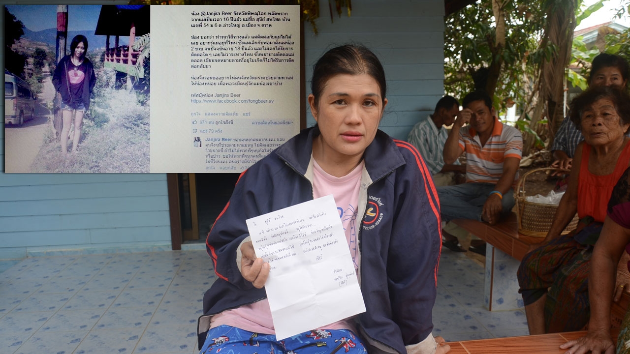 กระทั่งตอนนี้ รู้แต่เพียงชื่อของแม่และที่อยู่ตามเอกสารใบเกิดของตนเอง ด้วยความคิดถึงอยากเจอหน้าแม่มาก จึงตัดสินใจโพสต์เฟซบุ๊ก กลุ่มใน จ.ตราด หลายๆ กลุ่ม เมื่อช่วงเช้าของวันที่ 13 ก.พ.ที่ผ่านมา จนสมาชิกภายในกลุ่มได้มีการแชร์ต่อออกไปอย่างรวดเร็ว ใช้เวลาเพียงแค่วันเดียว ชาวสังคมออนไลน์ก็สามารถติดตามหา น.ส.สุนีย์ สพโชค อายุ 42 ปี จนเจอ
