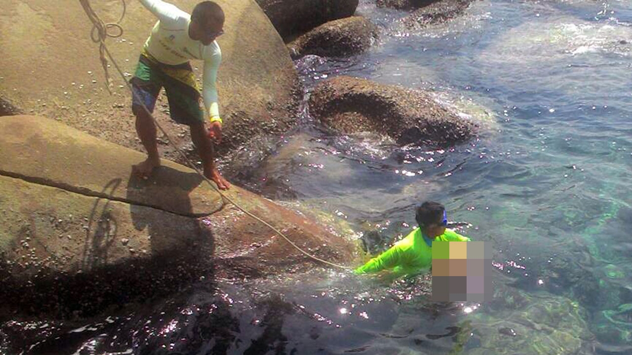 จากนั้นหน่วยกู้ภัยได้ดำลงไปปลดมือทั้งสองข้างที่ผู้ตายยึดติดอยู่กับโขดหินใต้ทะเล พร้อมกับนำศพขึ้นมาบนฝั่ง เพื่อให้เจ้าหน้าที่ตำรวจชันสูตร เบื้องต้นไม่พบบาดแผล หรือร่องรอยการถูกทำร้ายร่างกายแต่อย่างใด เสียชีวิตมาแล้วไม่ต่ำกว่า 6-8 ชม. จึงนำศพส่ง รพ.ป่าตอง เพื่อให้แพทย์ชันสูตรหาสาเหตุการตายที่แน่ชัด