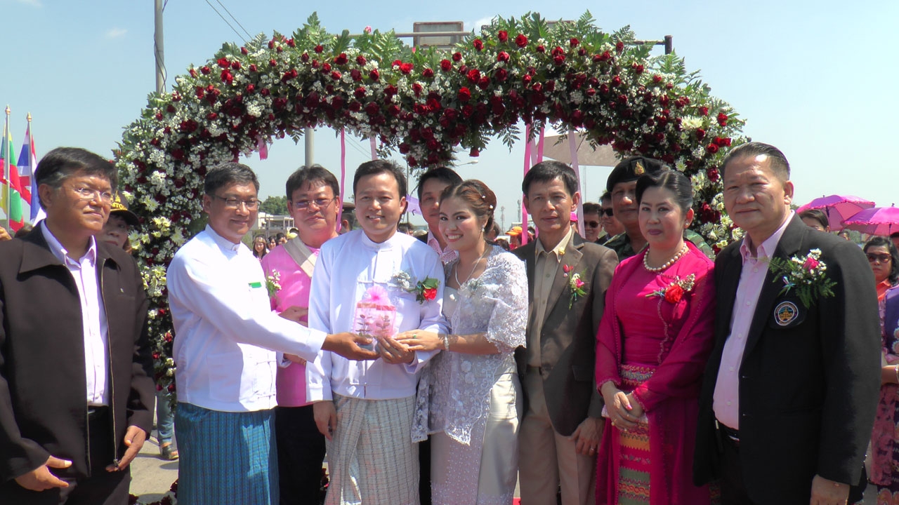 ผู้สื่อข่าวรายงานว่า เมื่อจดทะเบียนครบทุกคู่แล้ว ทั้งหมดได้เดินไปรับมอบทะเบียนสมรส ที่ซุ้มกุหลาบกลางสะพานมิตรภาพไทย-เมียนมาร์ โดยมี นายสมชัยฐ์ และนายอูหล่วยกั๋วอู ผวจ.เมียวดี ร่วมกันมอบเอกสารพันธสัญญาแห่งรัก ท่ามกลางสักขีพยานทั้งชาวไทยและชาวเมียนมาร์จำนวนมากที่มาร่วมพิธี