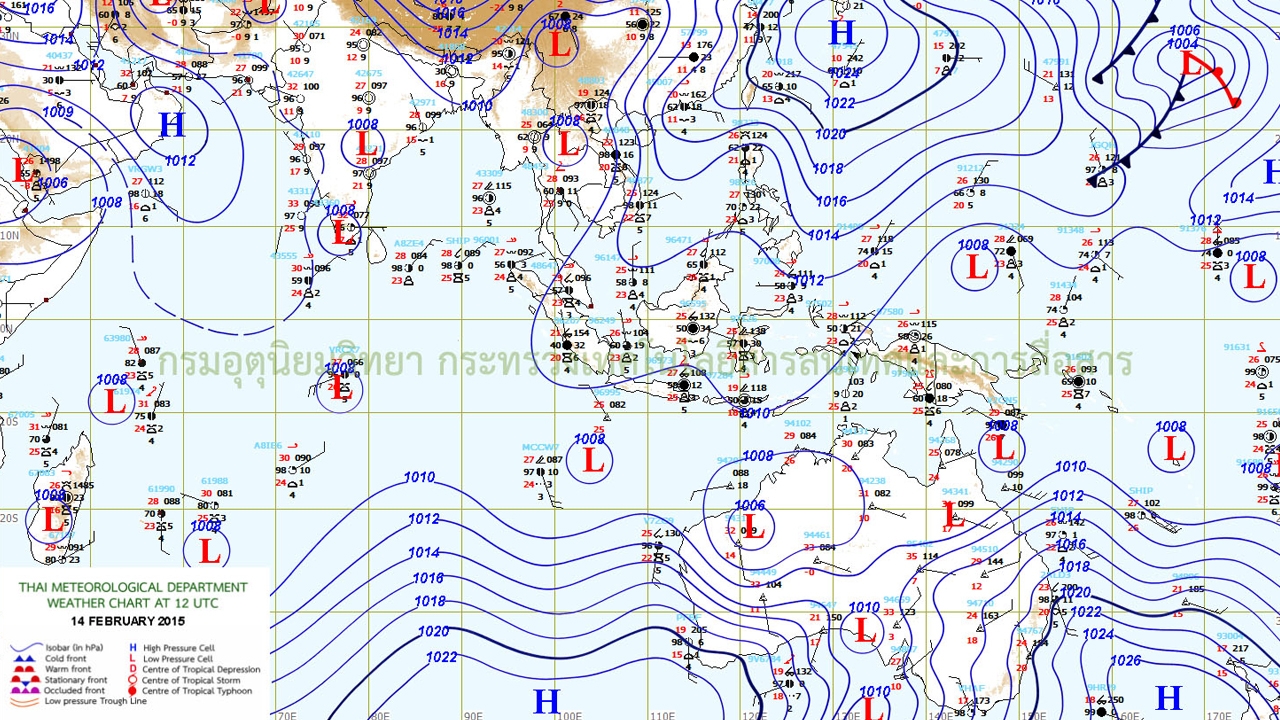 กรมอุตุนิยมวิทยา รายงานพยากรณ์อากาศประจำวันที่ 15 ก.พ. 2558 ลักษณะอากาศทั่วไป คลื่นกระแสลมตะวันตกเคลื่อนปกคลุมภาคตะวันออกเฉียงเหนือ ประกอบกับมีลมตะวันออกเฉียงใต้พัดนำความชื้นจากทะเลจีนใต้และอ่าวไทยเข้ามาปกคลุม ภาคตะวันออกเฉียงเหนือตอนล่าง ภาคกลางตอนล่าง และภาคตะวันออก ลักษณะเช่นนี้ ทำให้บริเวณดังกล่าว มีฝนฟ้าคะนองบางแห่ง ถึงเป็นแห่งๆ โดยจะมีอากาศหนาวเย็นในภาคเหนือ และภาคตะวันออกเฉียงเหนือ