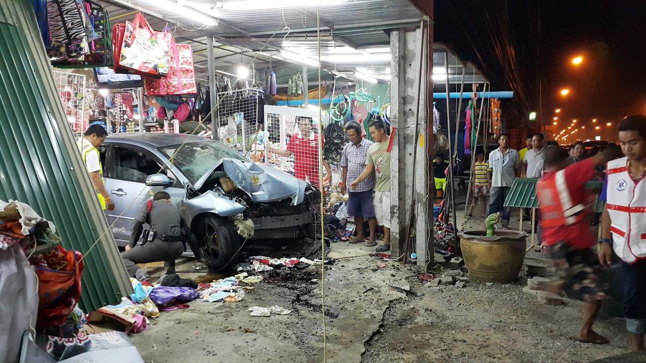 เมื่อเวลา 01.30 น. วันที่ 15 ก.พ.58 ร.ต.อ.วรพงศ์ ชาวแพะ พนักงานสอบ สภ.บางสะพาน จ.ประจวบคีรีขันธ์ ได้รับแจ้งเหตุรถเก๋งพุ่งชนร้านค้ามีผู้ได้รับบาดเจ็บหลายราย บริเวณริมถนนสายเพชรเกษม–ชายทะเล มุ่งหน้าออกถนนเพชรเกษม จึงเดินทางไปตรวจสอบ พร้อมเจ้าหน้าที่มูลนิธิสว่างราษฎร์ศรัทธาธรรมสถาน