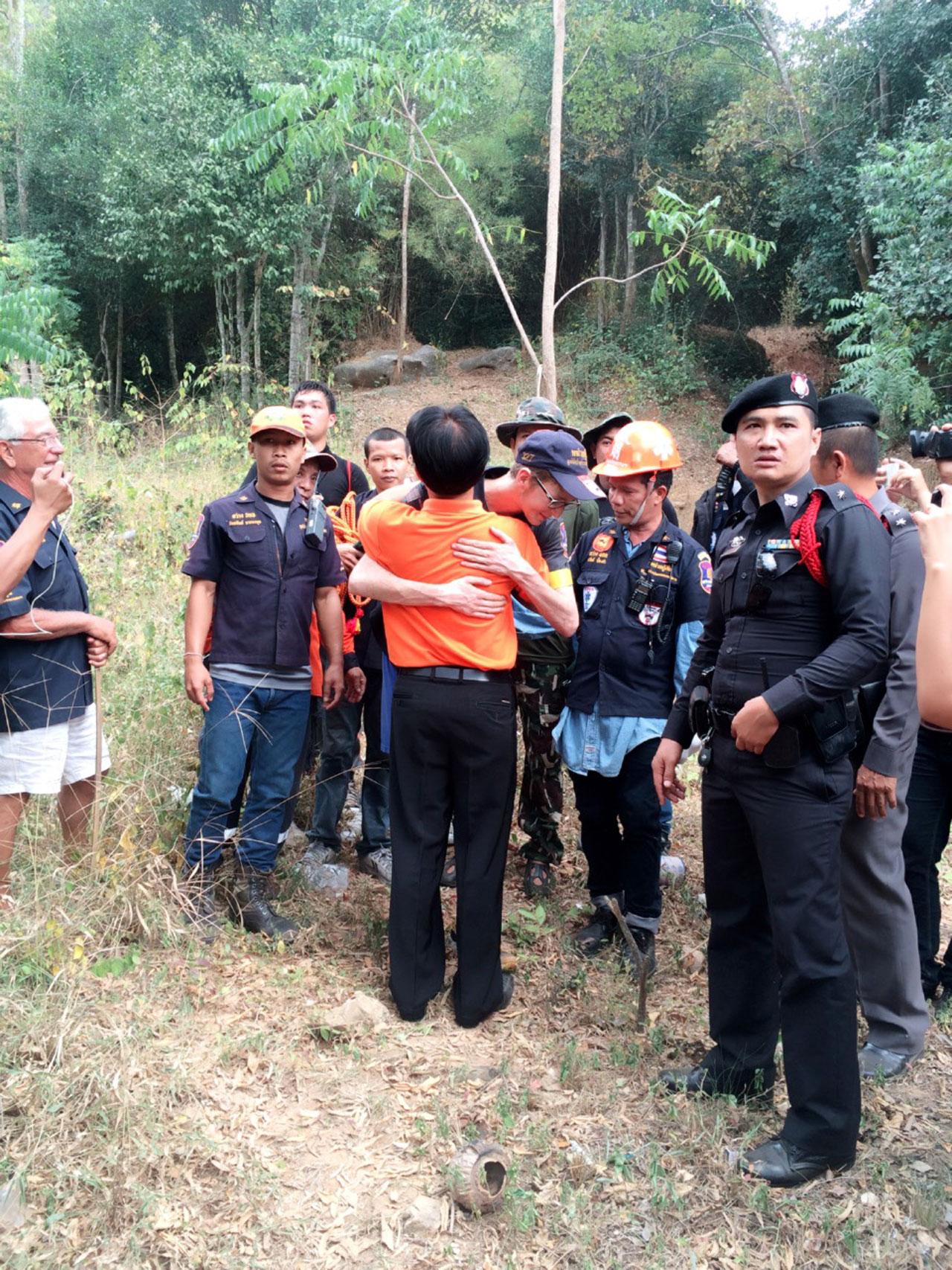 นายจิรันธนิน มะปัญญา เจ้าหน้าที่กู้ภัย นามเรียกขาน สว่าง110 กล่าวว่า หลังรับแจ้งได้จัดทีมค้นหาทั้งการเดินเท้า และทางเรือ เพื่อหาพิกัดที่แน่ชัด ซึ่งเจ้าหน้าที่ที่เดินเท้าได้เดินขึ้นยอดเขาและตัดลงหน้าผาฝั่งชายทะเล จนพบนักท่องเที่ยวนั่งอยู่ด้วยท่าทางอ่อนเพลีย ขาดน้ำ มีบาดแผลจากหนามเกี่ยวตามร่างกาย จึงให้การช่วยเหลือก่อนนำตัวลงจากเขาได้สำเร็จ ส่วนเส้นทางที่นักท่องเที่ยวติดเขาในครั้งนี้ เส้นทางโหดน้อยกว่า เมื่อครั้งที่หนุ่มเมืองกาญจนบุรีมาติดเขาซึ่งตอนนั้นเป็นหน้าผาสูง และมีหนามต้นเสมาจำนวนมาก โดยเส้นทางมีหน้าผาอันตรายมากกว่า