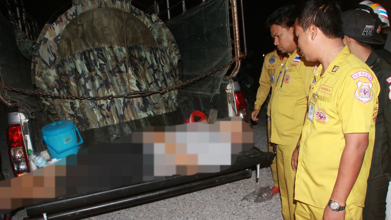 ไปตรวจสอบที่เกิดเหตุ บนท้ายรถกระบะ ยี่ห้อนิสสัน หมายเลขทะเบียน บน 3772 กำแพงเพชร พบศพ นายกว้าง พงษ์รัศมี อายุ 60 ปี อยู่บ้านเลขที่ 33 หมู่ที่ 2 ต.คลองพิไกร อ.พรานกระต่าย จ.กำแพงเพชร นอนเสียชีวิตอยู่ ผู้ตายนุ่งกางเกงขาสั้น เสื้อยืดโปโลแขนสั้น ตรวจสอบเบื้องต้นไม่พบร่องรอยหรือบาดแผลใดๆ