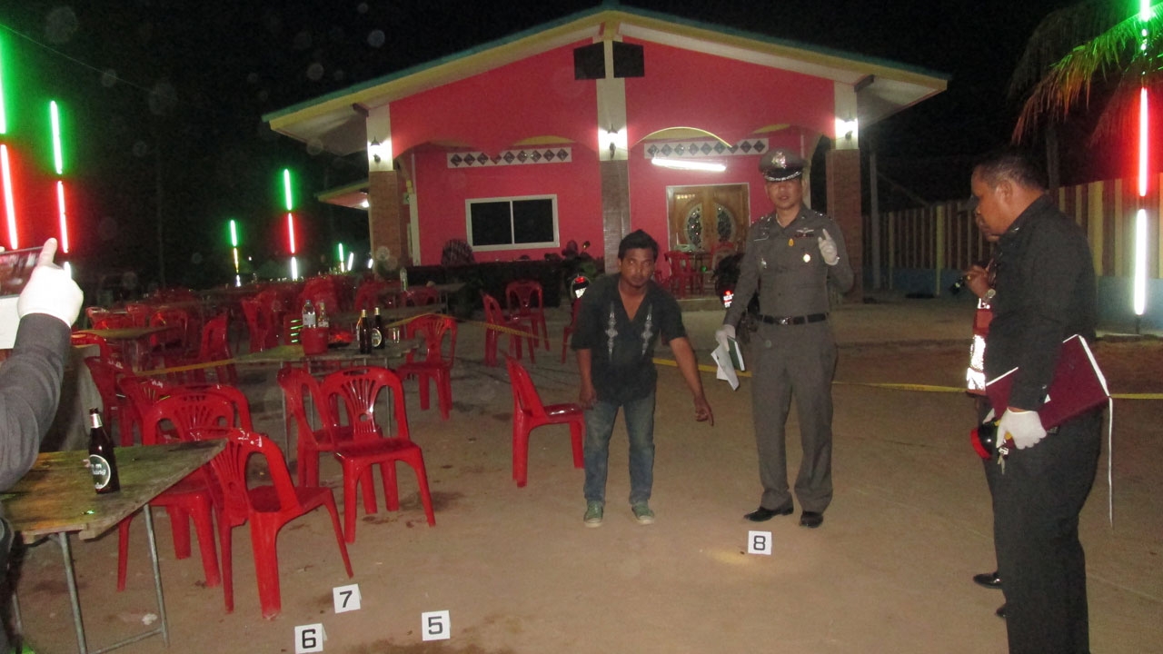 นายก อบต.ห้วยยาง จ่อยิงลูกบ้านกลางงานเลี้ยงขึ้นบ้านใหม่ อ้างถูกก่อกวนก่อนและชักมีดจะเเทง จึงยิงขู่ลงพื้น 1 นัด เพื่อปรามแต่ไม่หยุด จึงรัว 4 นัดใส่ร่าง ก่อนไปดับที่รพ.