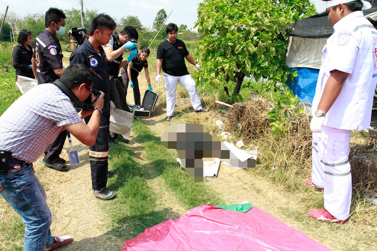 เมื่อเวลา 13.00 น. วันที่ 16 ก.พ. 58 ร.ต.ท.ทินกร ปาติโต ผงส.สภ.เมืองสมุทรปราการ รับแจ้ง พบศพผู้เสียชีวิตถูกแขวนคออยู่เพิงพักกลางบ่อปลา ในซอยแพรกษา 3 ต.แพรกษา อ.เมือง จึงพร้อมด้วย พ.ต.อ.วสันต์ บุญเจริญ รอง ผบก.ภ.จว.สมุทรปราการ พ.ต.อ.ต่อพงษ์ ตันตระวาณิชย์ ผกก.สภ.เมืองสมุทรปราการ ชุดสืบสวนสอบสวน กองพิสูจน์หลักฐาน และมูลนิธิร่วมกุศล เดินทางไปตรวจสอบ