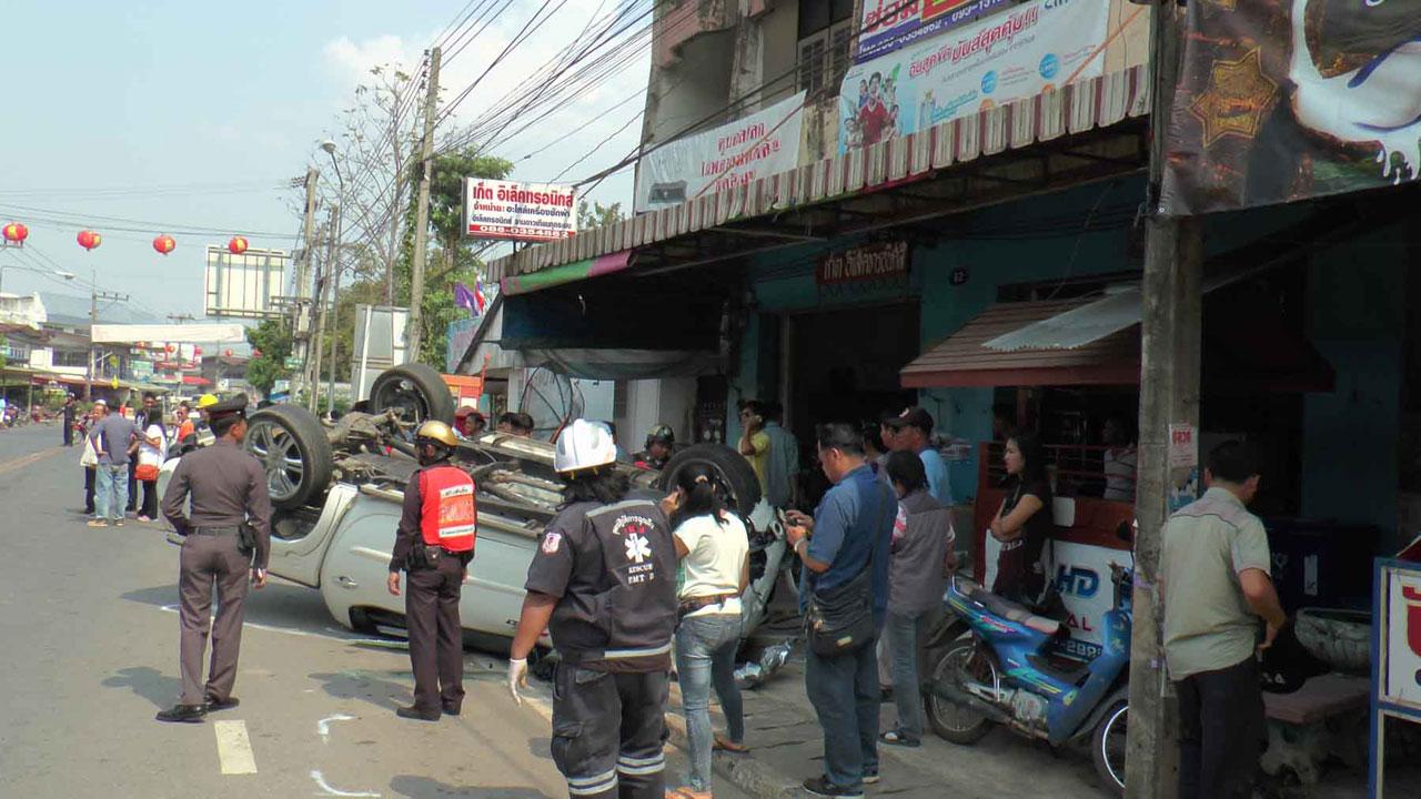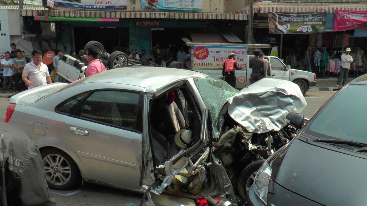 อุบัติเหตุชนกัน 5 คันรวด บาดเจ็บ 5 ราย หามส่งโรงพยาบาลสมเด็จพระยุพราชเด่นชัย คาดคนขับรถโรคประจำตัวกำเริบ เกิดเสียหลักพุ่งชนระนาว