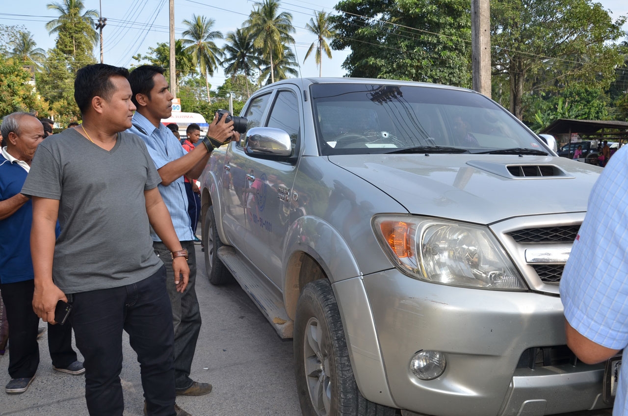 ที่เกิดเหตุพบรถกระบะ 4 ประตู ยี่ห้อโตโยต้าวีโก้ สีบรอนซ์เงิน ทะเบียน กจ-7252 นครศรีธรรมราช ข้างรถมีโลโก้ "อบต.โพธิ์ทอง" จอดอยู่บนถนน โดยมี นายกาแมน สมาด อายุ 46 ปี นายก อบต.โพธิ์ทอง ยืนรออยู่ข้างรถด้วยสีหน้าตกใจ ไม่ได้รับบาดเจ็บแต่อย่างใด โดยมีกลุ่มชาวบ้านยืนดูเหตุการณ์และให้กำลังใจนายกาแมนจำนวนมาก เจ้าหน้าที่ตรวจสอบสภาพรถ พบรอยกระสุนปืนบริเวณตัวถังประตูด้านขวา ด้านหลังและกระจกด้านหน้ารวม 7 รู พบหัวกระสุนปืนลูกโม่ ขนาด .357 ตกอยู่บริเวณที่เกิดเหตุจำนวน 5 หัว เจ้าหน้าที่จึงเก็บไว้เป็นหลักฐานต่อไป
