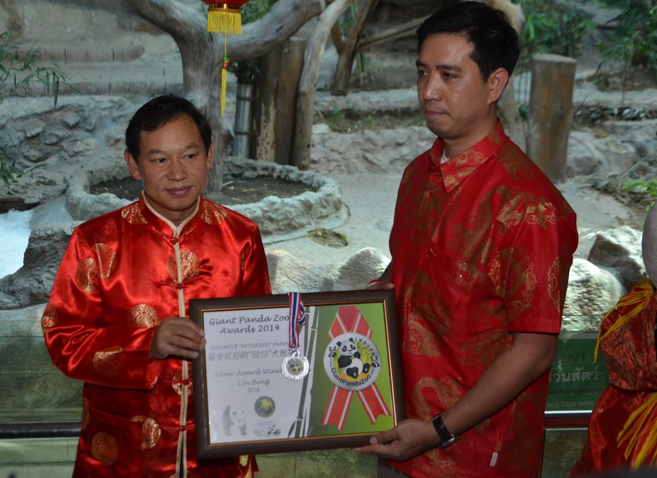 โดยรางวัลชนะเลิศเหรียญเงิน ประเภท "แพนด้าขวัญใจที่เดินทางกลับประเทศจีน" ได้แก่ แพนด้า "หลินปิง" โดยทางสวนสัตว์เชียงใหม่ และรางวัลชนะเลิศเหรียญทองแดง ประเภท "แพนด้าบุคลิกภาพยอดเยี่ยม" (Panda Personality of 2014) ได้แก่ แพนด้า "หลินฮุ่ย" โดยทางนายเบญจพลได้มอบเหรียญรางวัลและใบประกาศผ่านนายเฉา