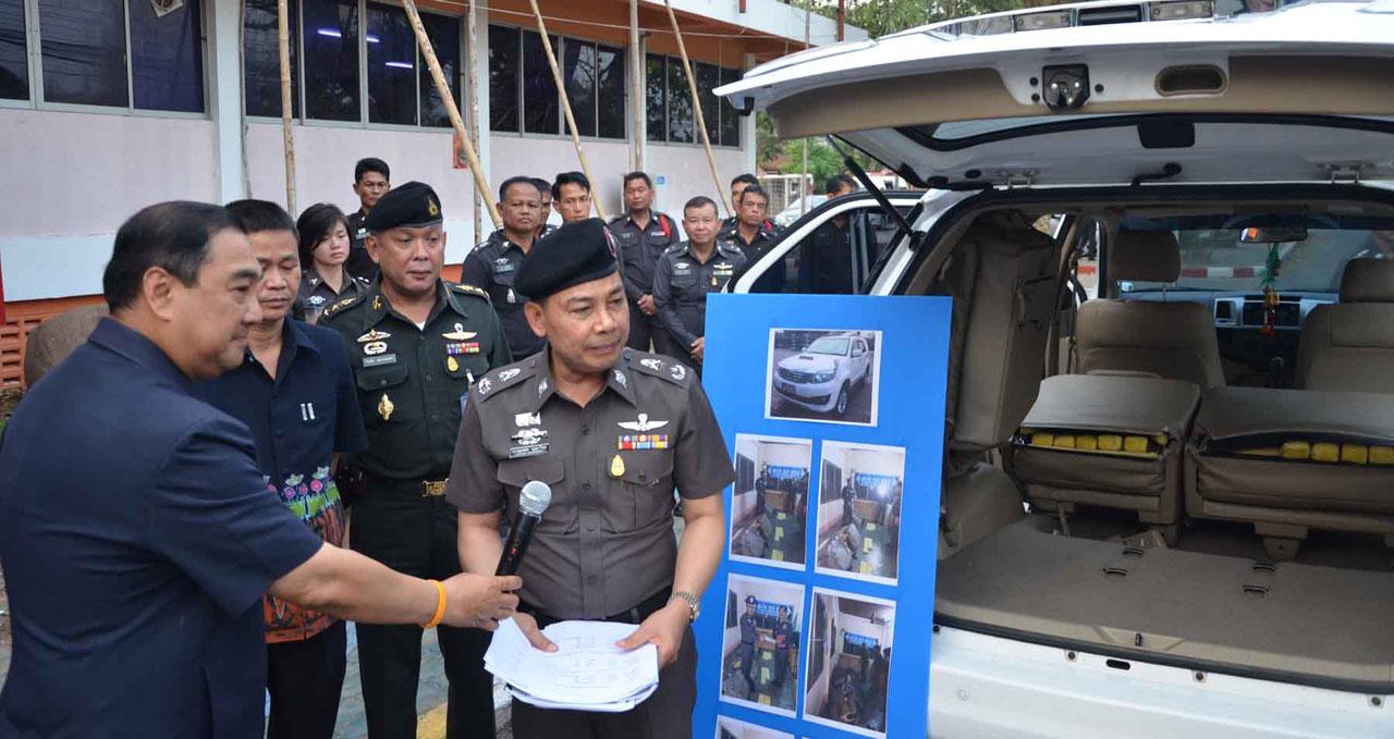 ต่อมาวันที่ 18 ก.พ.58 ทางเจ้าหน้าที่ตำรวจได้ตรวจสอบทะเบียนรถดังกล่าวไปยังต้นสังกัด และได้รับรายงานกลับมาว่า รถคันดังกล่าวนั้นที่จริงทะเบียน คือ กข 9300 ระนอง จึงได้ทำการอายัดรถคันดังกล่าวไว้ กระทั่งเจ้าหน้าที่ได้ทำการตรวจค้นรถคันดังกล่าวอย่างละเอียดอีกครั้ง ก็พบว่าที่บริเวณเบาะนั่งมีการซุกซ่อนยาบ้าใส่ไว้ทุกเบาะ โดยเบาะคนขับมียาบ้าอยู่ 46 มัด และแถวที่ 3 อีก 2 เบาะมียาบ้าจำนวน 35 มัด รวมยาบ้าทั้งหมด 163,600 เม็ด จึงตรวจยึดเป็นของกลาง แต่ในขณะที่ทำการตรวจค้นรถอย่างละเอียดนั้น นายสมเกียรติ คนขับรถ ได้ถือโอกาสหลบหนีไป