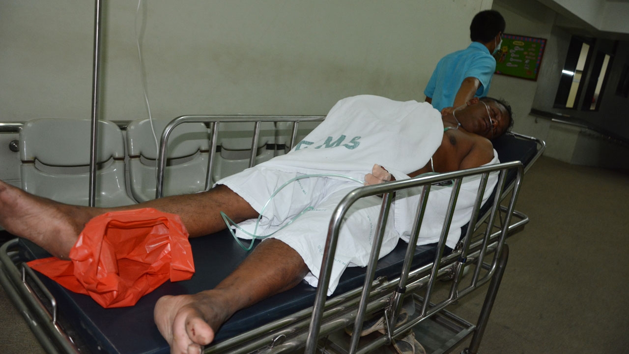ระหว่างที่กำลังจะลงมือทอดลูกชิ้น 1 ใน 4 คนร้ายได้ยื่นเบียร์ให้ตนดื่ม แต่ปฏิเสธเพราะดื่มไม่เป็น จากนั้นคนร้ายก็ใช้ช่วงที่เผลอ อ้อมมาทางด้านหลัง แล้วใช้อาวุธปืนจี้เอว บังคับให้เอาเงินส่งให้ แต่ผู้บาดเจ็บขัดขืน จึงถูกตีด้วยขวดเบียร์ จนล้มฟุบตกจากรถ จากนั้นคนร้ายยังได้ใช้มีดปอกผลไม้บนรถของผู้บาดเจ็บ แทงซ้ำประมาณ 4-5 ครั้ง ซึ่งผู้บาดเจ็บพยายามฮึดสู้ แต่ก็สู้ไม่ไหว จึงวิ่งหนีตายมาขอความช่วยเหลือจากชาวบ้านนำตัวส่ง รพ. ส่วนคนร้ายได้เงินสดในตัวของตนไป 1,800 บาท แล้วพากันหลบไปทางถนนสายบายพาส