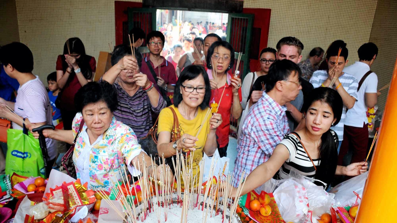ชาวไทยเชื้อสายจีนจำนวนมาก หลังเซ่นไหว้บรรพบุรุษแล้วพากันเดินทางไปกราบไหว้เทพเจ้าสิ่งศักดิ์สิทธิ์ที่วัดมังกรกมลาวาส หรือวัดเล่งเน่ยยี่ ย่านเยาวราช ขอพรให้ประสบแต่ความโชคดี ชีวิตเจริญรุ่งเรือง ในเทศกาลปีใหม่จีน.