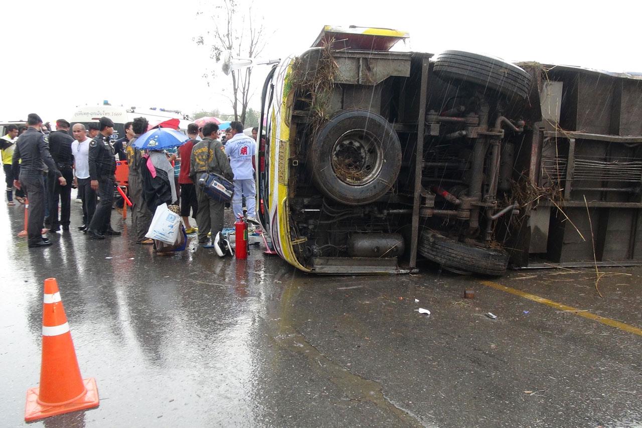 นางสิริมา กล่าวด้วยว่า เมื่อรถวิ่งมาถึงจุดเกิดเหตุ ขณะนั้นได้มีรถยนต์คันหนึ่งที่วิ่งอยู่ข้างหน้า เกิดล้อหลุด คนขับรถบัสจึงหักหลบล้อรถยนต์ที่หลุดออกมา และพยายามประคองรถ แต่ขณะนั้นมีฝนตกทำให้ถนนลื่น จนรถเสียหลักลงร่องกลางถนนพลิกคว่ำ ส่งผลทำให้ผู้ที่นั่งโดยสารมาในรถบัสได้รับบาดเจ็บจำนวนมากดังกล่าว ส่วนคนขับรถบัสก็ได้รับบาดเจ็บด้วยเช่นกัน.