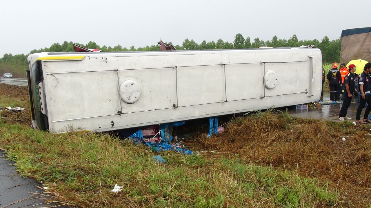 รถบัสพาคณะทัวร์ตรุษจีนจากวงเวียนใหญ่ จะไปเที่ยวซื้อของที่ตลาดโรงเกลือ มาถึงกบินทร์บุรี มีฝนตกตลอด รถคันหน้าเกิดล้อหลุด โชเฟอร์ต้องหักหลบจนลื่นตกร่องกลางถนน พลิกคว่ำ มีผู้บาดเจ็บถึง 40 คน แยกส่ง 2 โรงพยาบาล