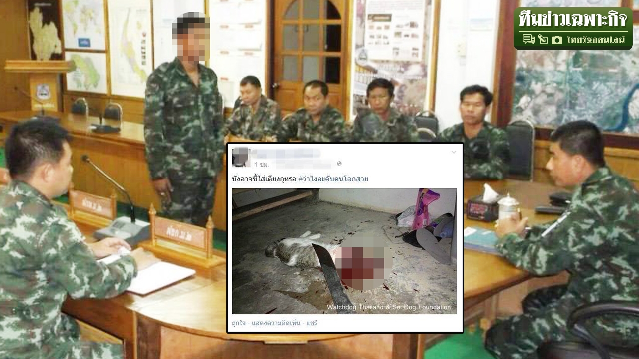 เมื่อวันที่ 19 ก.พ. ผู้สื่อข่าวรายงานว่า ขณะนี้โลกโซเชียลเน็ตเวิร์ก ได้มีการแชร์ภาพทารุณกรรมสัตว์ โดยมีการโพสต์จาก ทหารนายหนึ่ง ที่ใช้ชื่อในเฟซบุ๊กว่า sgt-sibtit autkaew ซึ่งทราบชื่อต่อมาคือ ส.ต.สิบทิศ อุดแก้ว ประจำการที่กรมทหารม้าที่ 2 พระยาพิชัยดาบหัก จ.อุตรดิตถ์ พร้อมระบุข้อความว่า "บังอาจขี้ใส่เตียงกูหรอ #ว่าไงละคับคนโลกสวย"