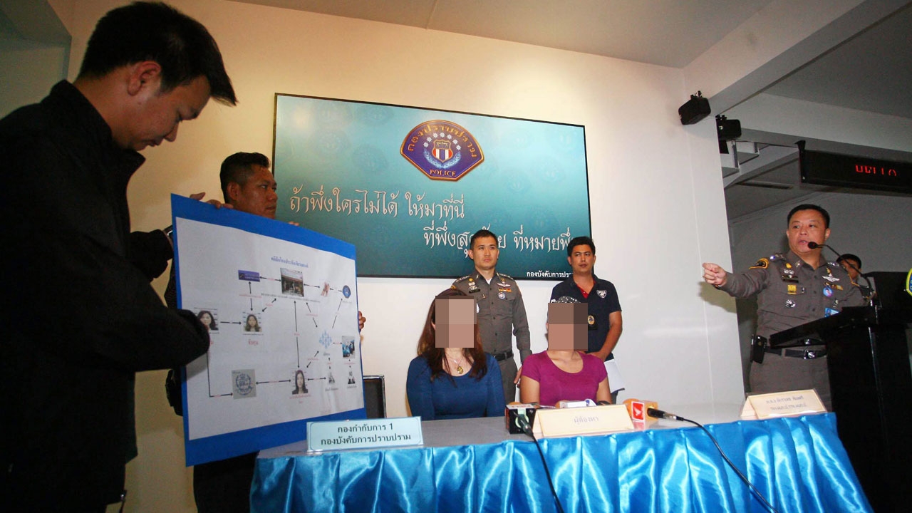 พันตำรวจเอกอัคราเดช พิมลศรี รักษาราชการแทนผู้บังคับการปราบปราม แถลงผลการจับกุม นางชญานี มนตรีโชค อายุ 49 ปี นางสาวลลนา มนตรีโชค อายุ 21 ปี (ขณะนี้ป่วยจึงไม่ได้นำตัวมาแถลงด้วย) และนางสาววรรเพ็ญ เลี่ยนเล็ก อายุ 31 ปี ผู้ต้องหาตามหมายจับศาลอาญา ฐานฉ้อโกงประชาชน หลอกขายประกันภัยรถยนต์ผ่านโทรศัพท์ ขณะกำลังจะหลบหนีไปยังนครเซี่ยงไฮ้ ประเทศจีน