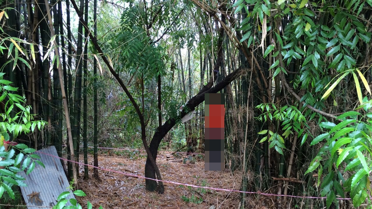 ที่เกิดเหตุ เป็นป่าไผ่อยู่ห่างจากไซต์งานก่อสร้างบ้านพัก ไปประมาณ 50 เมตร พบศพชายทราบชื่อ นายลิขิต ทำสารกอง อายุ 39 ปี อยู่บ้านเลขที่ 84 ม. 5 ต.สำโรง อ.สำโรง จ.อุบลราชธานี สภาพใช้ผ้าขาวม้ารัดคอตัวเองผูกติดกับกิ่งต้นสะเดาเสียชีวิต ผู้ตายสวมเสื้อยืดแขนยาวสีส้ม กางเกงขายาวสีดำ และรองเท้าบูตยางสีดำ ไม่พบร่องรอยบาดแผลจากการต่อสู้หรือถูกทำร้าย เสียชีวิตมาแล้วประมาณ 1 ชั่วโมง
