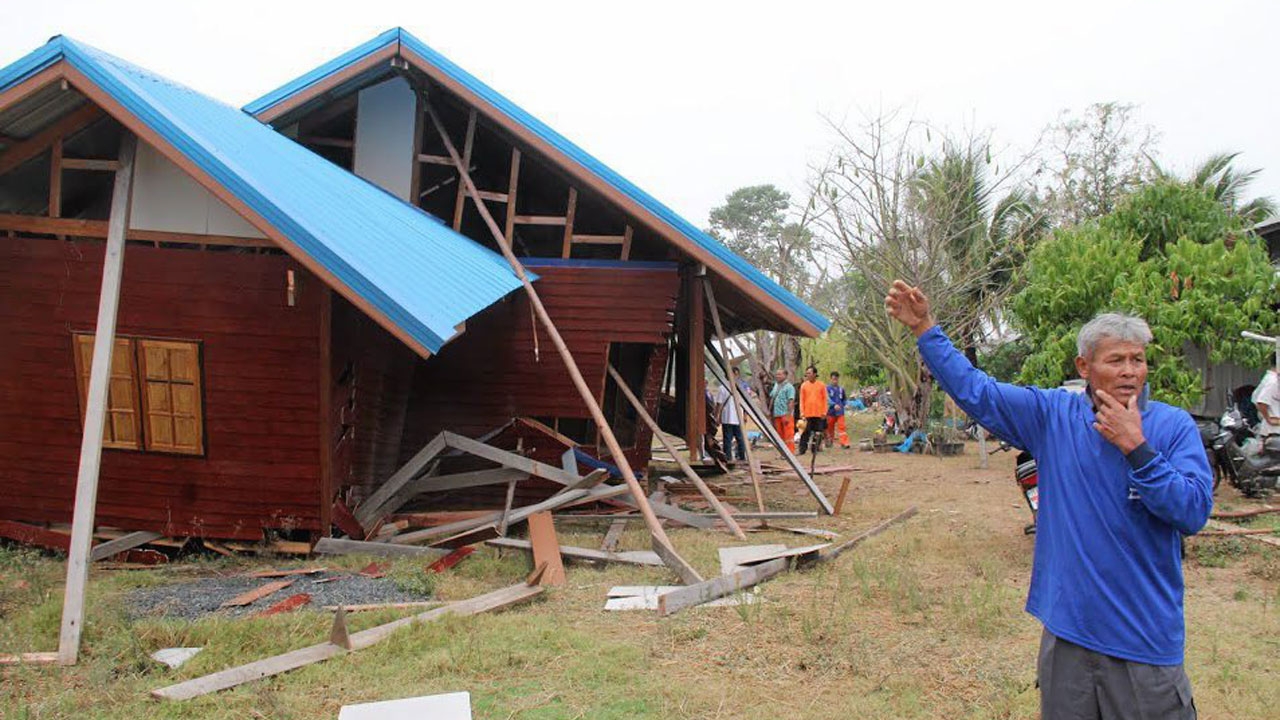 นายทศพล การินทร์ ปลัดฝ่ายความมั่นคงอำเภอเขื่องใน เปิดเผยว่า จากเหตุการณ์พายุพัดบ้านเรือนประชาชนในพื้นที่ อ.เขื่องใน เมื่อช่วงกลางดึกที่ผ่านมา สำรวจความเสียหายเบื้องต้นมีบ้านเรือนประชาชน ในตำบลสร้างถ่อ อำเภอเขื่องใน จำนวน 6 หมู่บ้าน ได้รับความเสียหายหลังคาถูกพายุพัดจำนวน 43 หลัง โรงเรียน 1 หลัง ศาลากลางบ้าน 1 หลัง คอกสัตว์ 1 คอก ยุ้งฉางข้าว 3 หลัง ส่วนบ้านที่เสียหายทั้งหลัง คือบ้านเลขที่ 133 บ้านดอนเชียงโท ม.7 ของนายวิชิต ทองอ่อน อายุ 58 ปี ซึ่งเป็นบ้านที่เพิ่งทำการก่อสร้างแล้วเสร็จ และทำพิธีขึ้นบ้านใหม่ไปเมื่อเดือนมกราคม ที่ผ่านมา โดยเสาบ้านถูกลมพายุพัดจนหักโค่น บ้านล้มลงมาทั้งหลัง โชคดีขณะเกิดเหตุไม่มีผู้อาศัยอยู่ในบ้าน