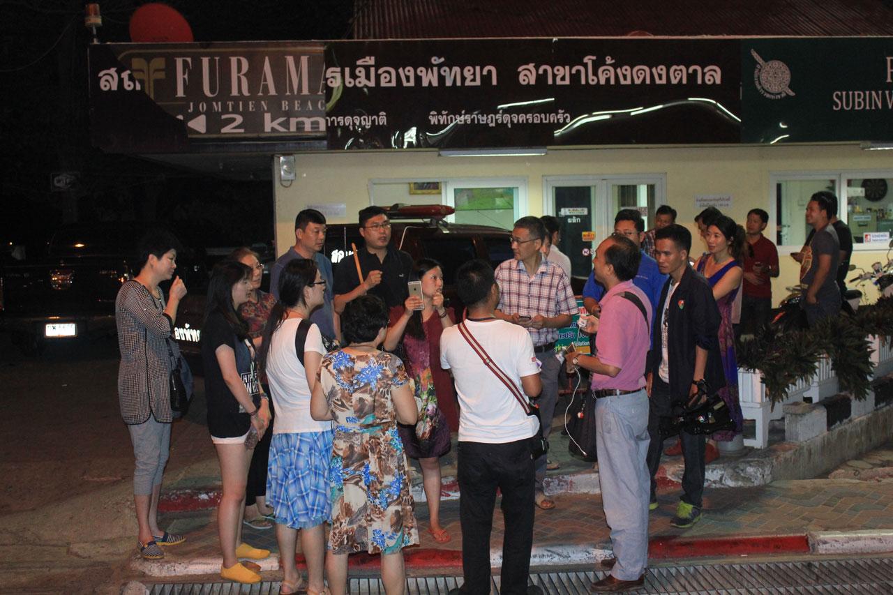 เมื่อเวลา 23.30 น. วันที่ 19 ก.พ. พ.ต.อ.สุขทัศน์ พุ่มพันธุ์ม่วง ผกก.สภ.เมืองพัทยา และ พ.ต.ท.สถาพร สงวนสุข สว.สทท.กก.2 บก.ทท. พ.ต.ต.ปิยะพงษ์ เอนสาร สารวัตรตำรวจท่องเที่ยวเมืองพัทยา พร้อมกำลังเจ้าหน้าที่ตำรวจฝ่ายสืบสวนกองกับการตำรวจท่องเที่ยว ฝ่ายสืบสวน สภ.เมืองพัทยา ได้ไปให้การช่วยเหลือ นักท่องเที่ยวชาวจีน 33 คน ที่บริเวณหน่วยสอบสวนย่อยโค้งดงตาล สภ.เมืองพัทยา ริมหาดจอมเทียน ม.11 ต.หนองปรือ อ.บางละมุง จ.ชลบุรี หลังรับได้รับแจ้งว่า ถูกไกด์นำเที่ยวชาวจีน ปล่อยทิ้ง ขณะเดินทางมาเที่ยวในเมืองพัทยา